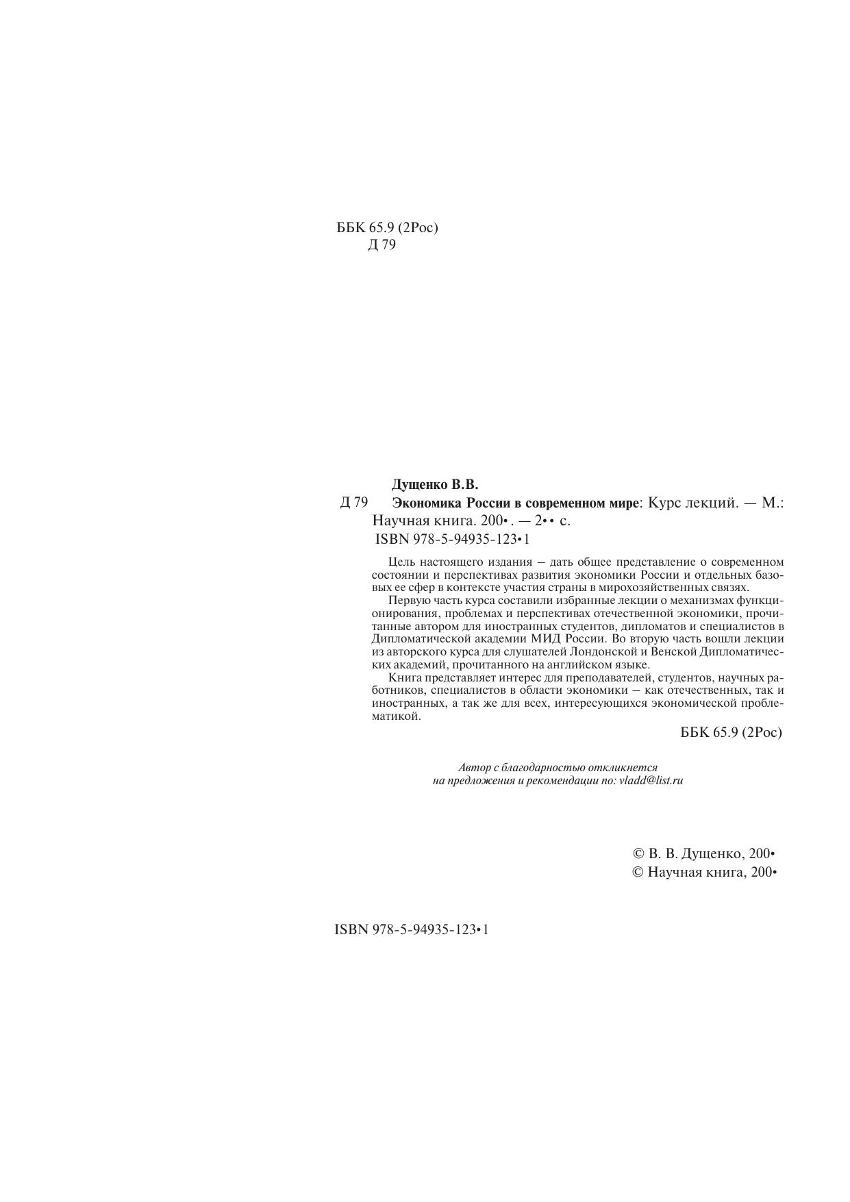 Цель настоящего издания – дать общее представление о современном состоянии и перспективах развития экономики России и отдельных базовых ее сфер в контексте участия страны в мирохозяйственных связях. Первую часть курса составили избранные лекции о механизмах функционирования, проблемах и перспективах отечественной экономики, прочитанные автором для иностранных студентов, дипломатов и специалистов в Дипломатической академии МИД России. Во вторую часть вошли лекции из авторского курса для слушателей Лондонской и Венской Дипломатических академий, прочитанного на английском языке. Книга представляет интерес для преподавателей, студентов, научных работников, специалистов в области экономики – как отечественных, так и иностранных, а так же для всех, интересующихся экономической проблематикой.