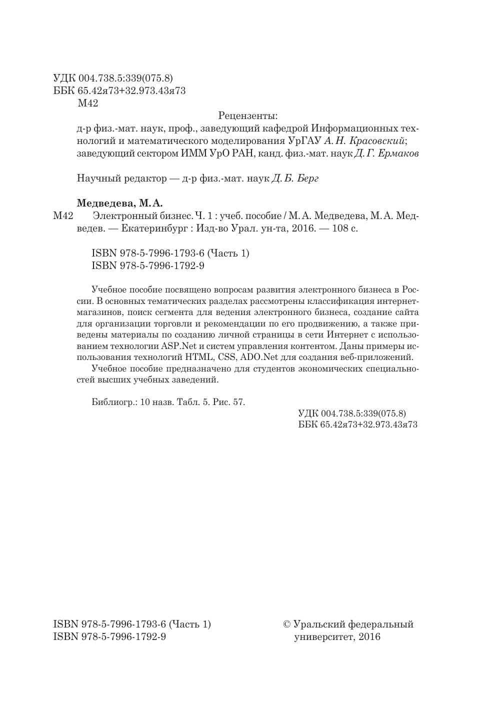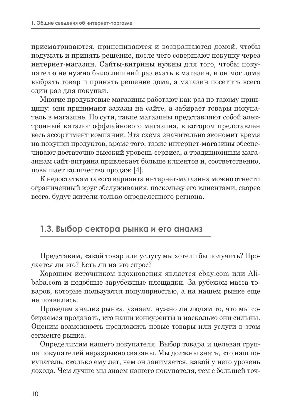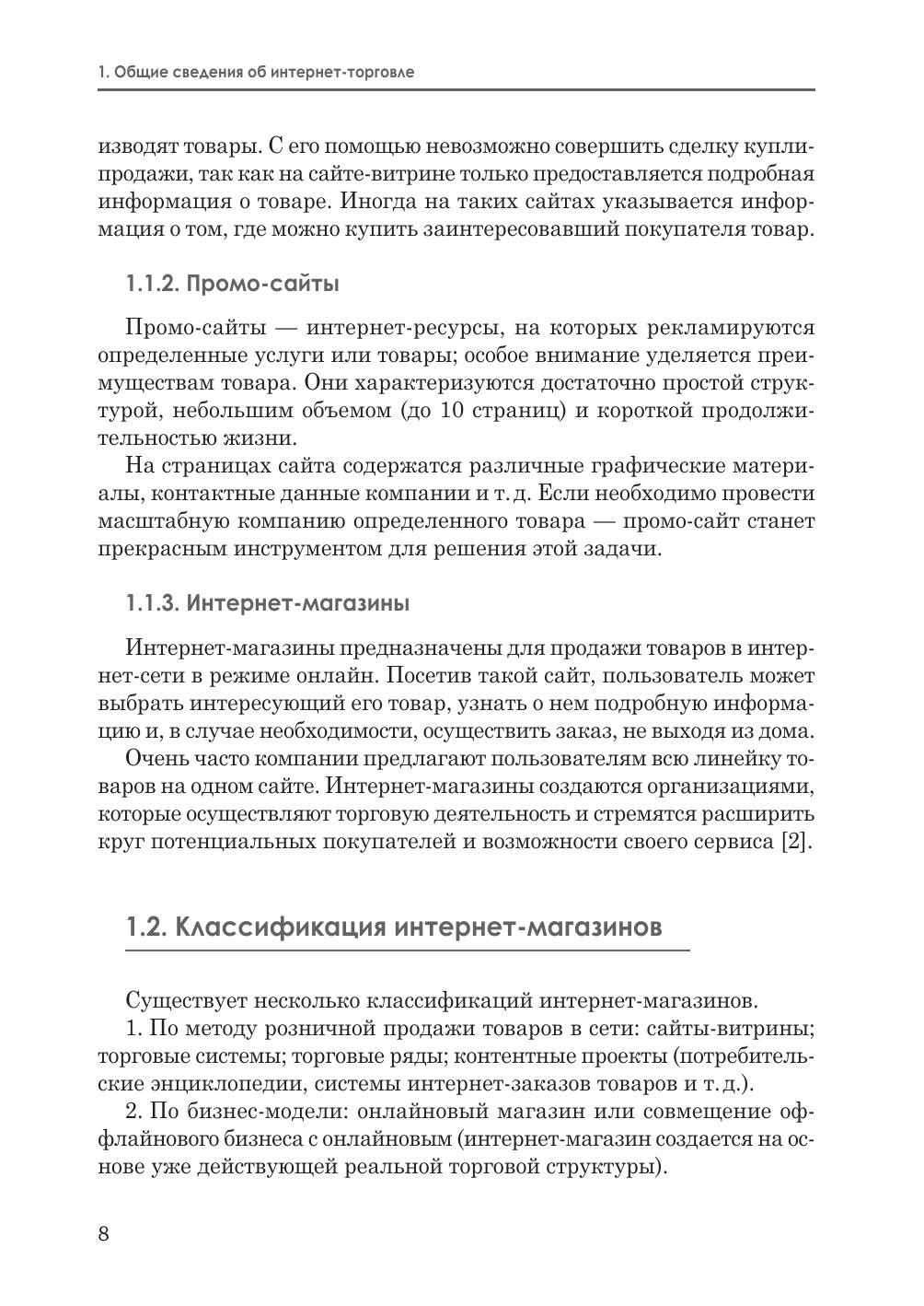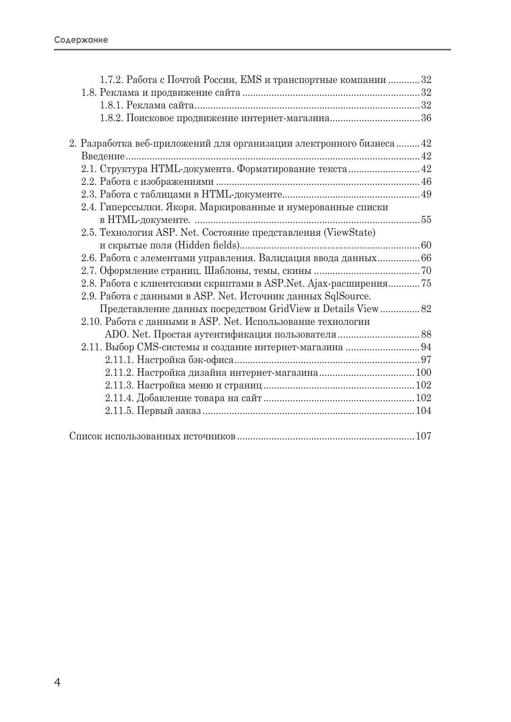 Учебное пособие посвящено вопросам развития электронного бизнеса в России. В основных тематических разделах рассмотрены классификация интернетмагазинов, поиск сегмента для ведения электронного бизнеса, создание сайта для организации торговли и рекомендации по его продвижению, а также приведены материалы по созданию личной страницы в сети Интернет с использованием технологии ASP.Net и систем управления контентом. Даны примеры использования технологий HTML, CSS, ADO.Net для создания веб-приложений. Учебное пособие предназначено для студентов экономических специальностей высших учебных заведений.