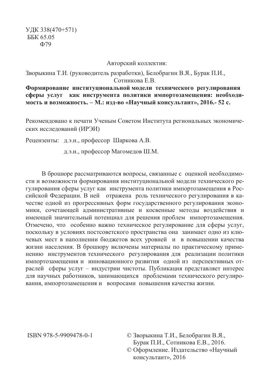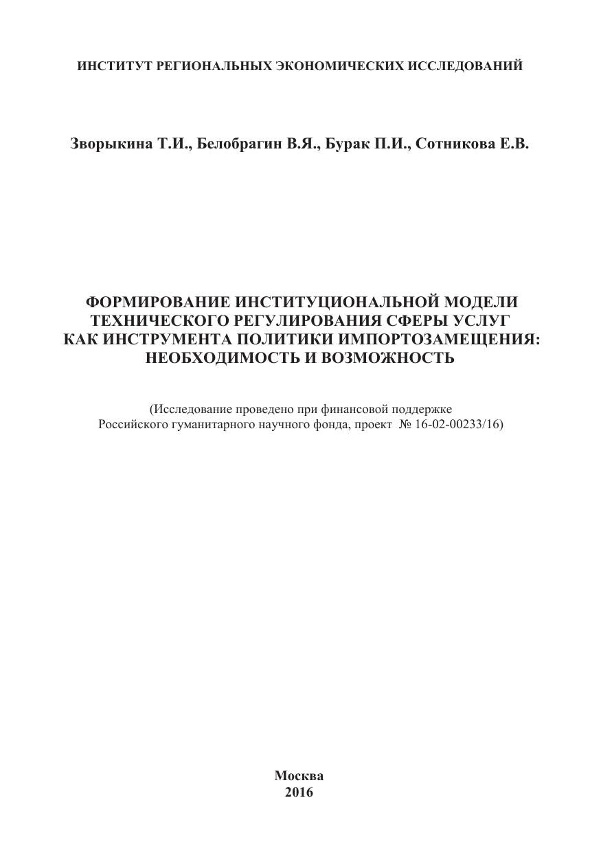 Формирование институциональной модели технического регулирования сферы услуг как инструмента политики импортозамещения: необходимость и возможность