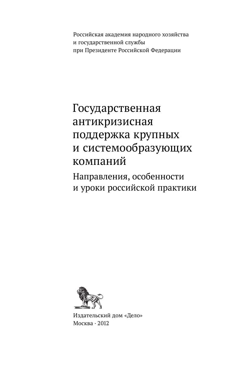 Государственная антикризисная поддержка крупных и системообразующих компаний: направления, особенности и уроки российской практики
