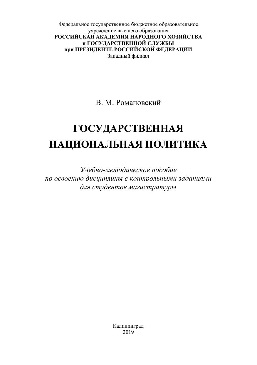 Государственная национальная политика по освоению дисциплины с контрольными заданиями для студентов магистратуры