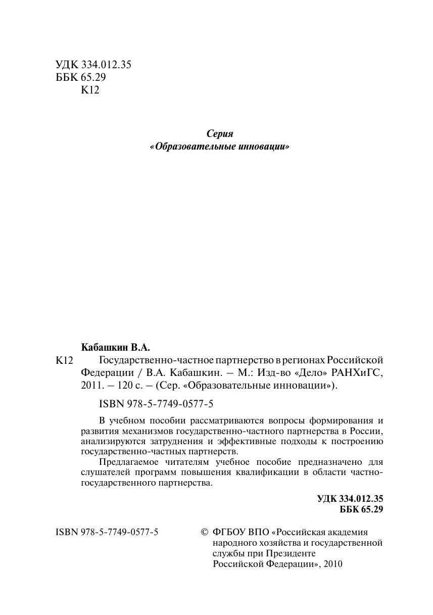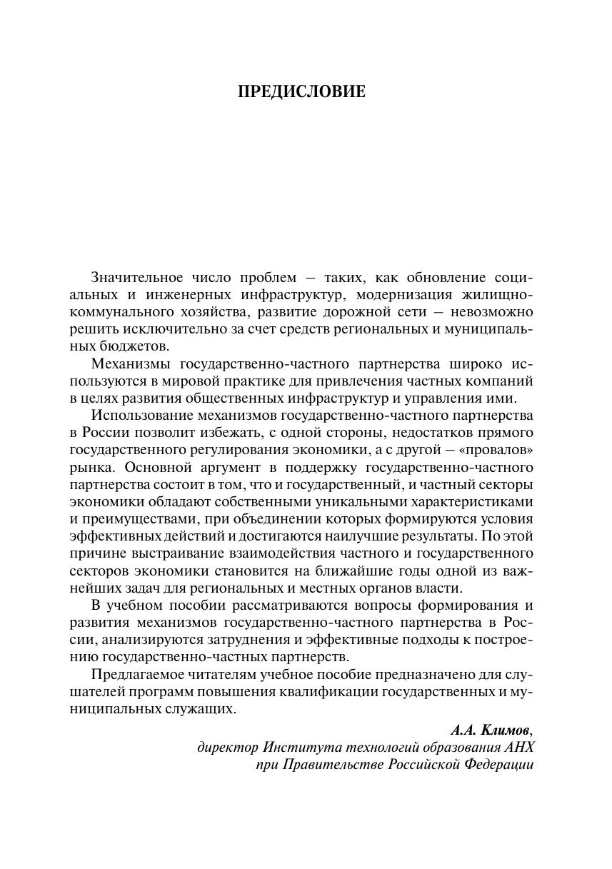 Серия Образовательные инновации. В учебном пособии рассматриваются вопросы формирования и развития механизмов государственно-частного партнерства в России, анализируются затруднения и эффективные подходы к построению государственно-частных партнерств. Предлагаемое читателям учебное пособие предназначено для слушателей программ повышения квалификации в области частногосударственного партнерства.