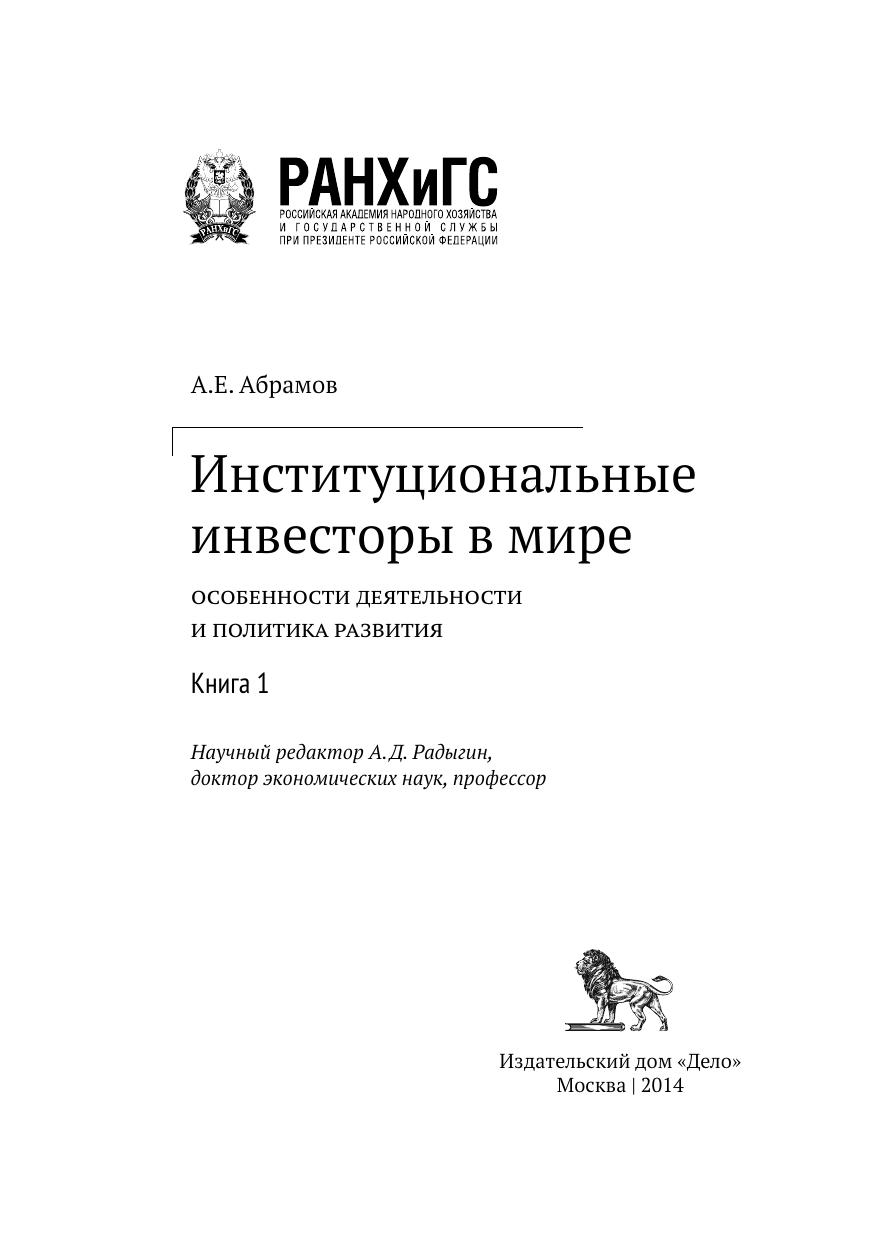 Институциональные инвесторы в мире: особенности деятельности и политика развития: в 2 кн.: кн. 1