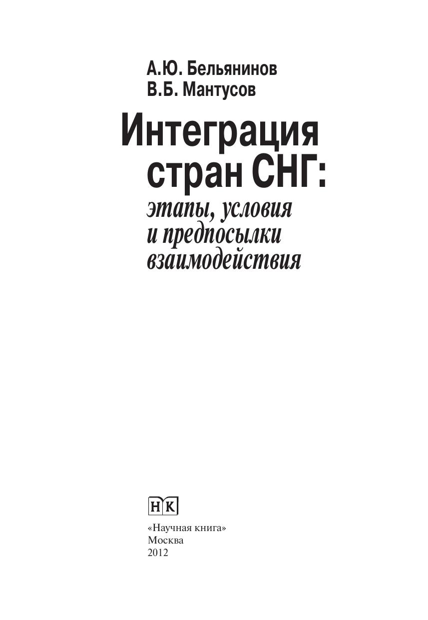 Интеграция стран СНГ: этапы, условия и предпосылки взаимодействия. Монография