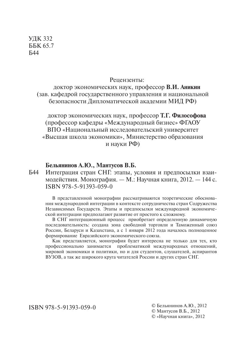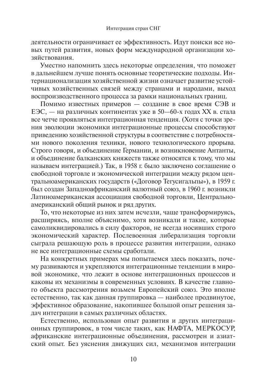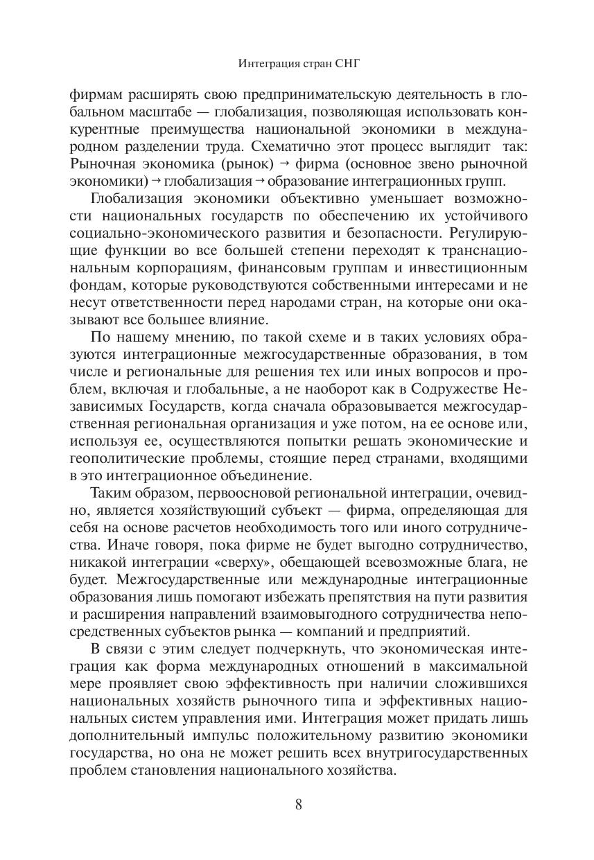 В представленной монографии рассматриваются теоретические обоснования международной интеграции в контексте сотрудничества стран Содружества Независимых Государств. Этапы и предпосылки международной экономической интеграции предполагают развитие от простого к сложному. В СНГ интеграционный процесс приобретает определенную динамичную последовательность: создана зона свободной торговли и Таможенный союз России, Беларуси и Казахстана, а с 1 января 2012 года началось полноценное формирование Евразийского экономического союза. Как представляется, монография будет интересна не только для тех, кто профессионально занимается проблематикой международных отношений, мировой экономики и политики, но и для студентов, слушателей, аспирантов ВУЗОВ , а так же широкого круга читателей России и других стран СНГ.