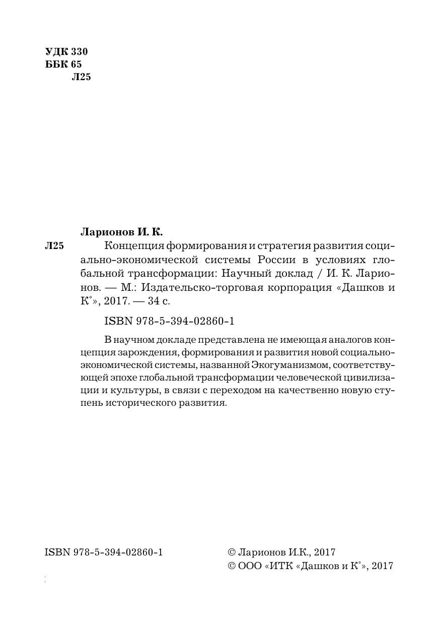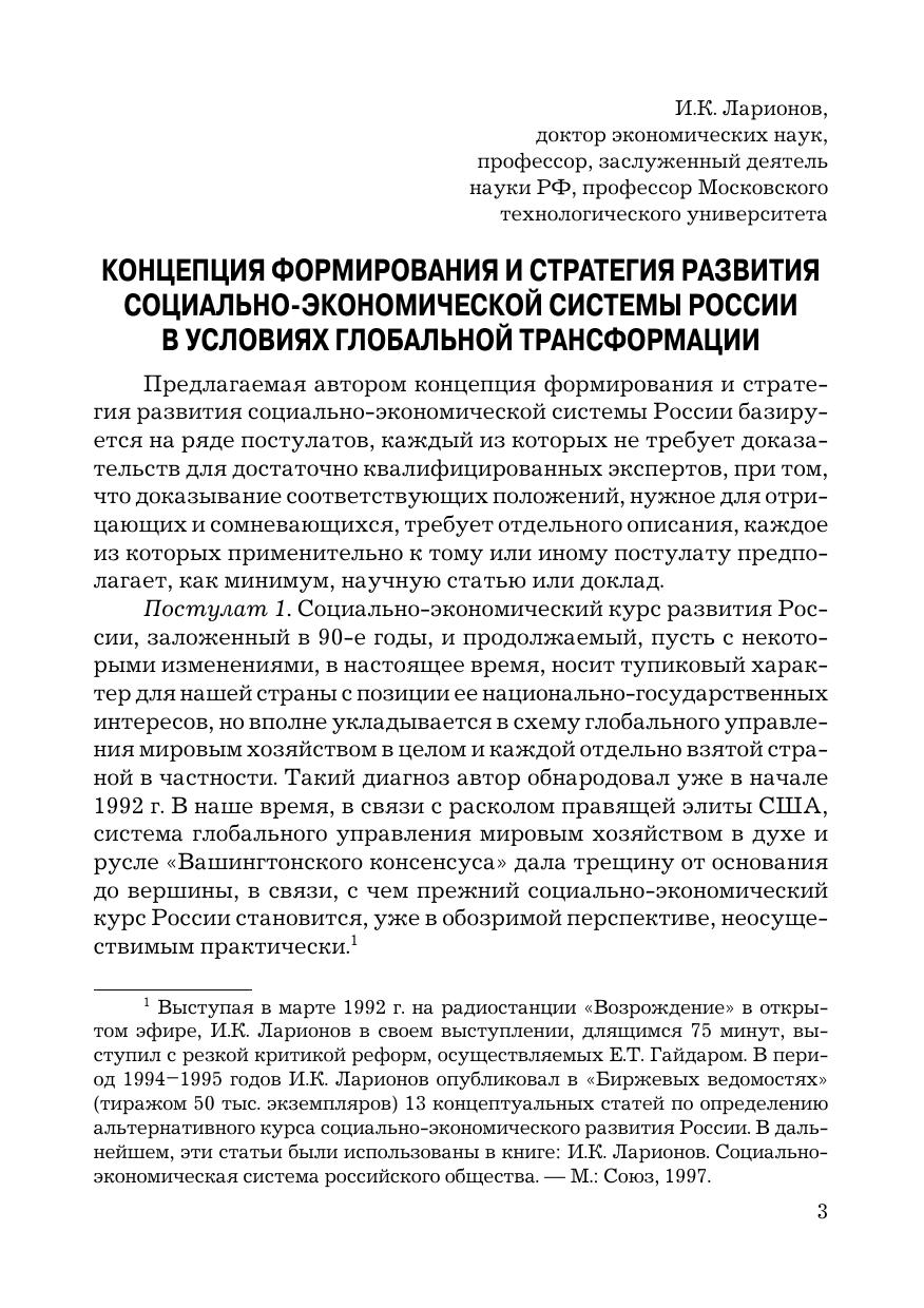 Концепции формирования и стратегии развития социально-экономической системы России в условиях глобальной трансформации: Научный доклад