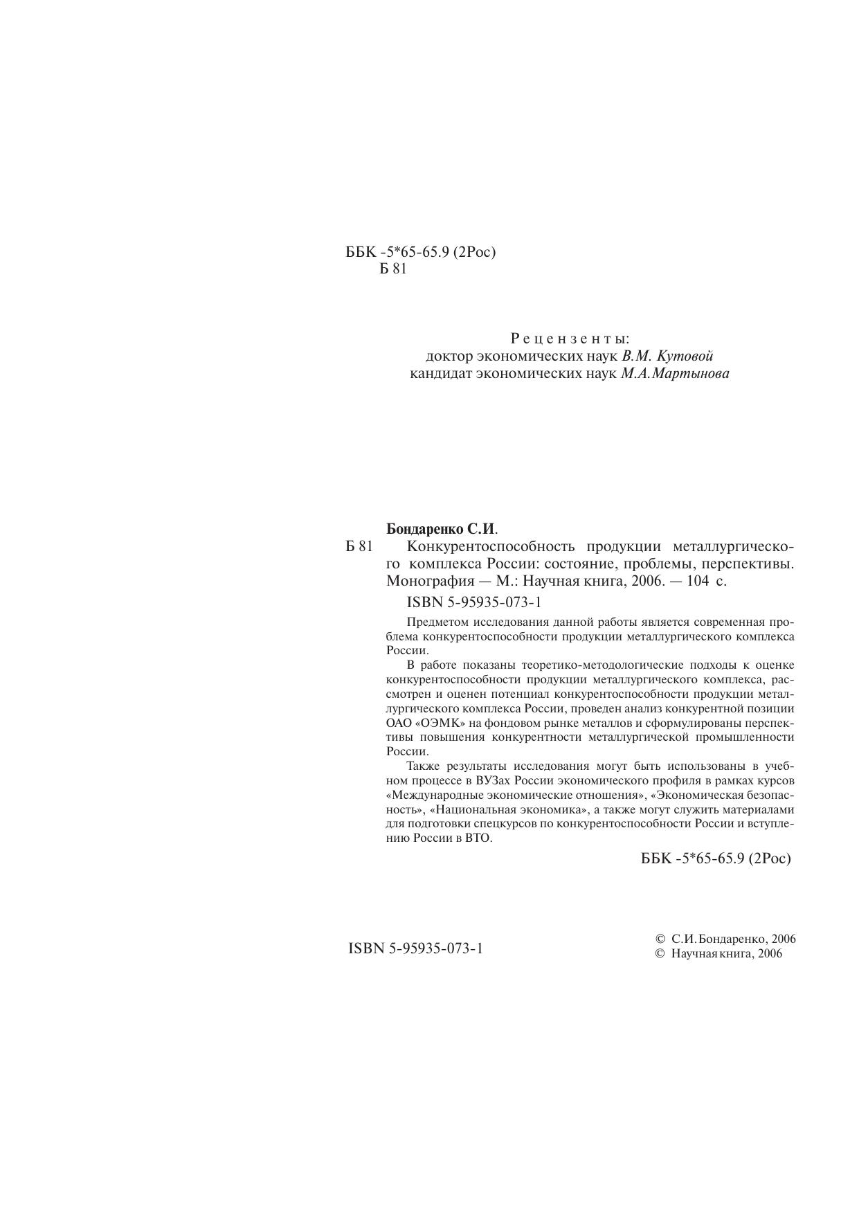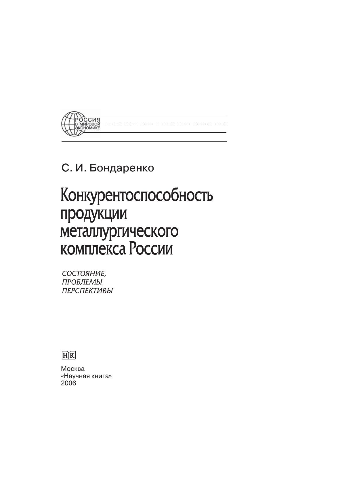 Конкурентоспособность продукции металлургического комплекса России: состояние, проблемы, перспективы. Монография