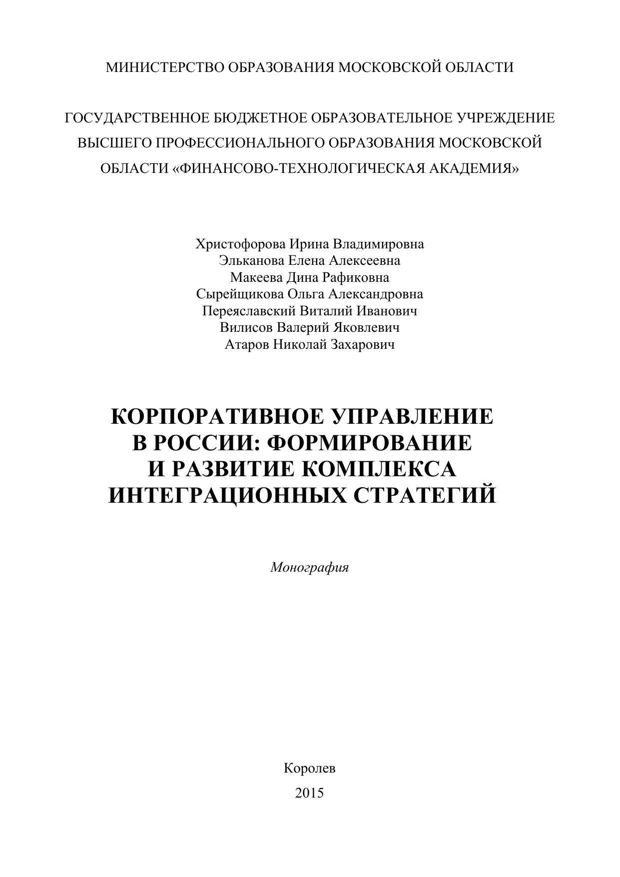 Корпоративное управление в России: формирование и развитие комплекса интеграционных стратегий