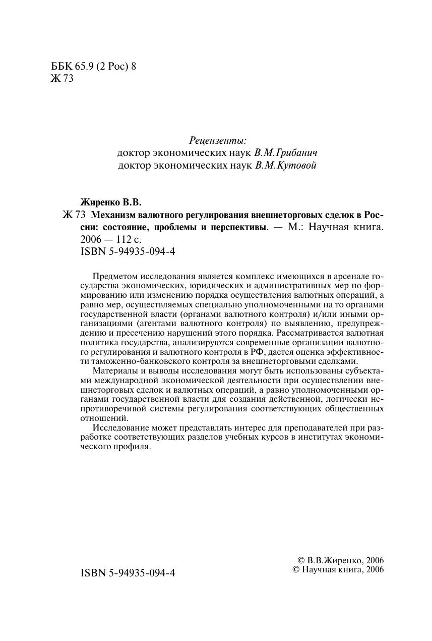 Механизм валютного регулирования внешнеторговых сделок в России: состояние, проблемы и перспективы