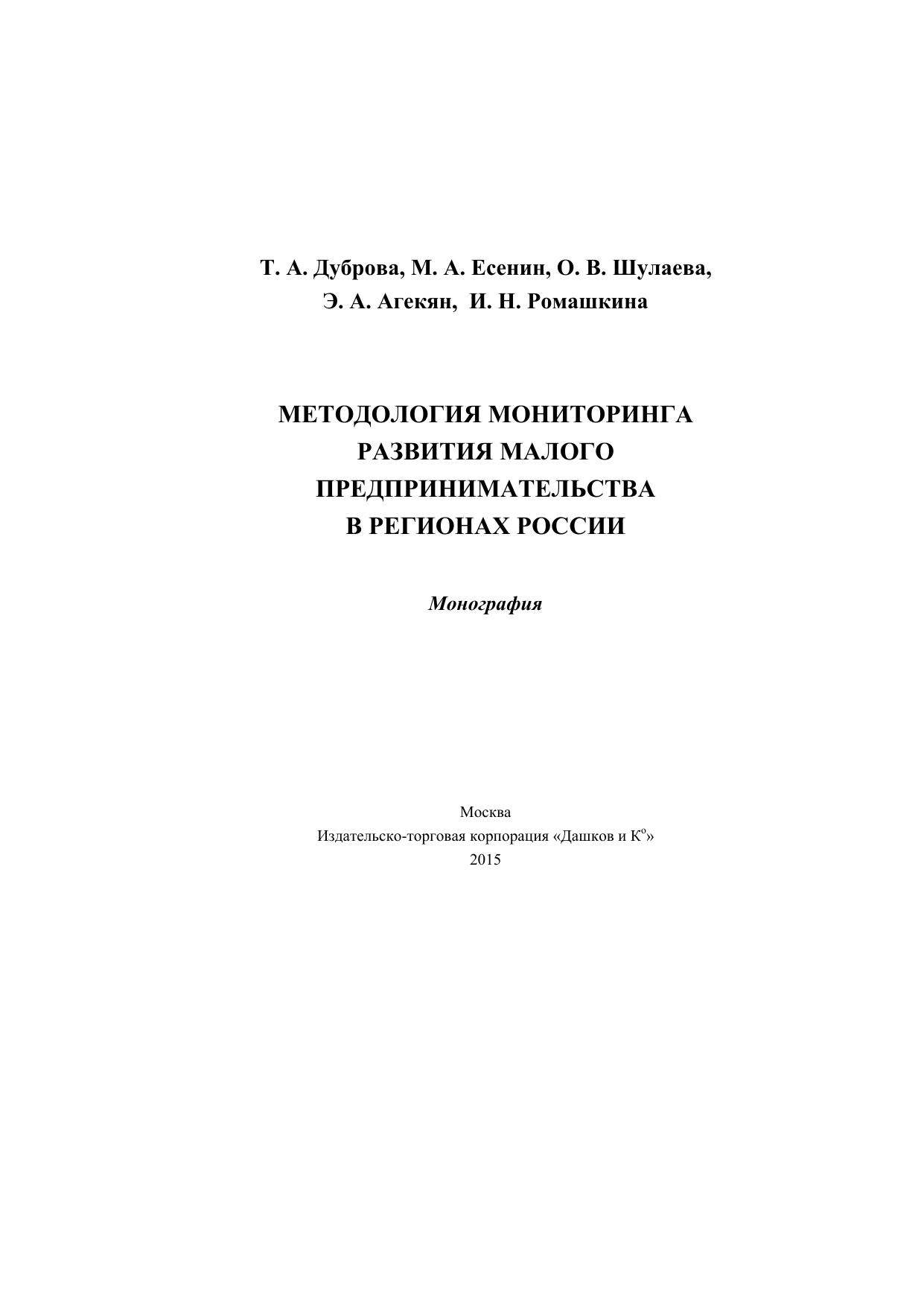 Методология мониторинга развития малого предпринимательства в регионах России: монография