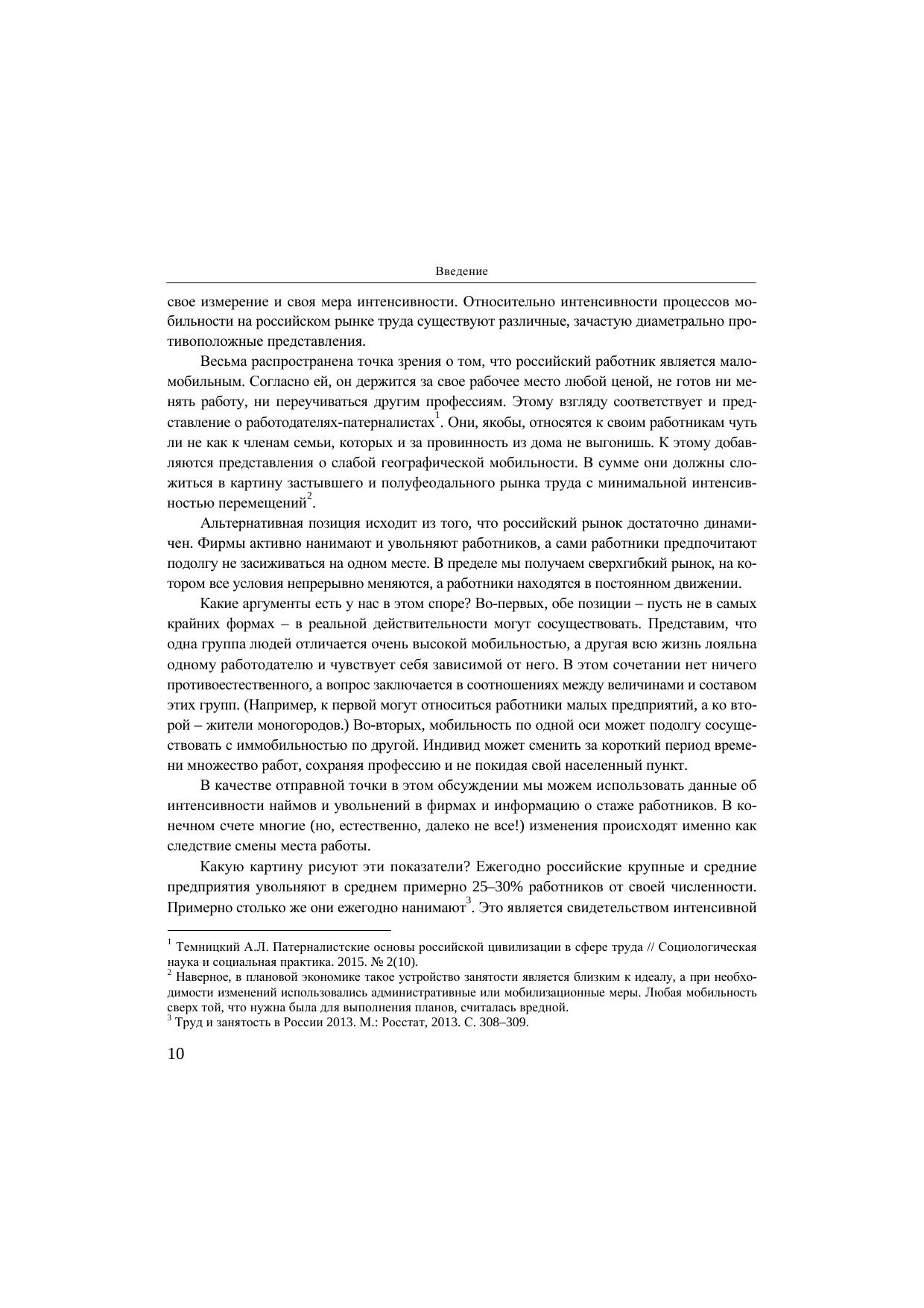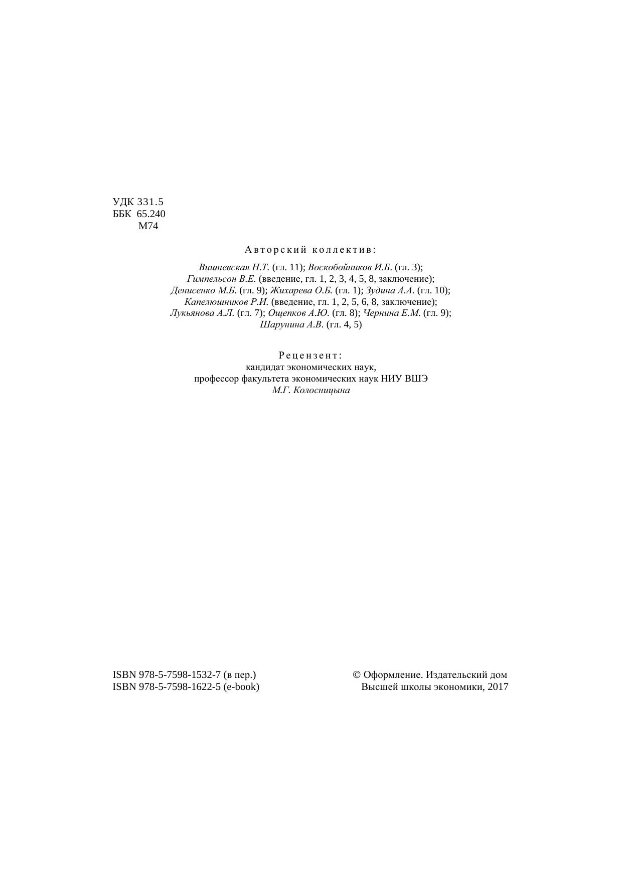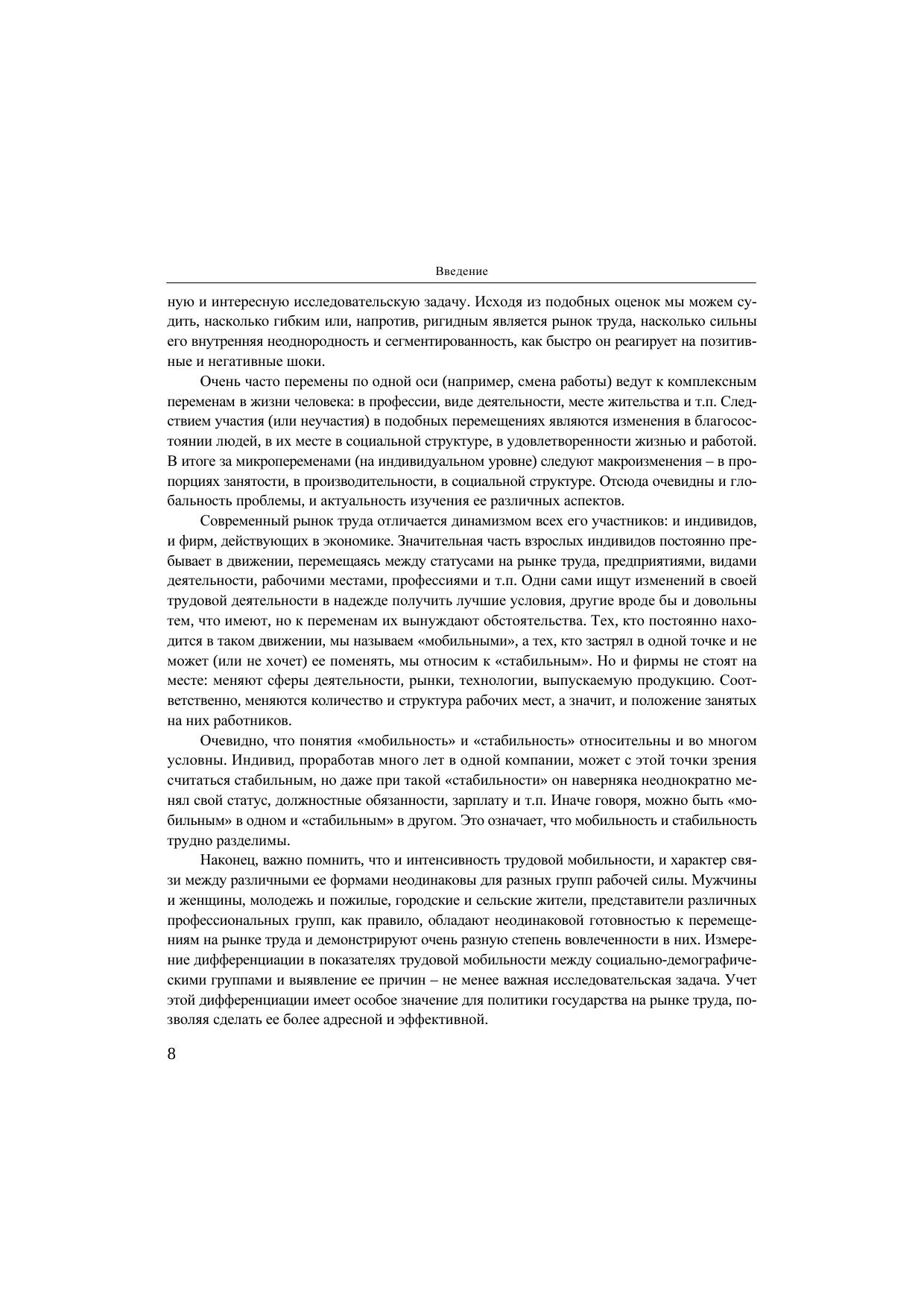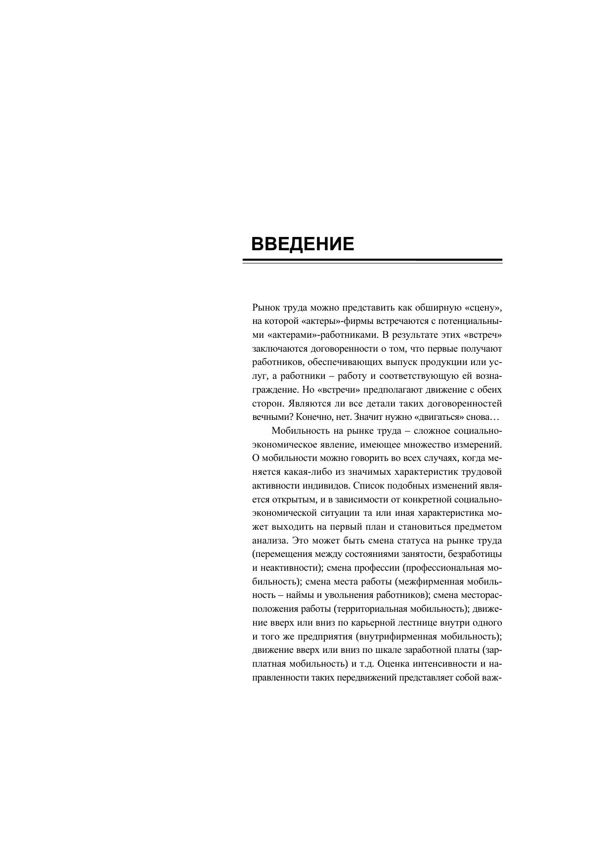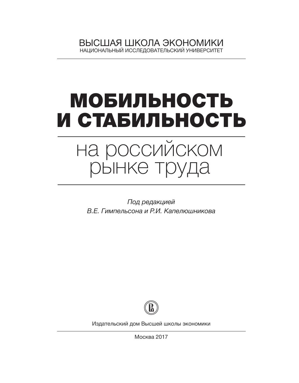 Книга продолжает цикл монографий Центра трудовых исследований НИУ ВШЭ, посвященных российскому рынку труда («Нестандартная занятость в российской экономике» (2005), «Заработная плата в России: эволюция и дифференциация» (2007), «Российский работник: образование, профессия, квалификация» (2011) и «В тени регулирования: неформальность на российском рынке труда» (2014)). В монографии дан комплексный анализ процессов мобильности на российском рынке труда, который охватывает период 2000–2014 гг. В ней обсуждаются такие важные аспекты, как динамика рабочих мест и движение работников, процессы реаллокации рабочей силы, ведущие к изменению структуры занятости и росту производительности труда, взаимосвязь мобильности на внешних и внутренних рынках труда, мобильность менеджеров промышленных предприятий и вопросы, связанные с внешней миграцией. Анализ опирается на большие массивы микроданных и широкое применение современных эконометрических методов. Исследование дает целостное представление о том, как развиваются процессы трудовой мобильности в России и какие последствия это имеет. Для экономистов и социологов, специалистов в области трудовых отношений и социальной политики. Монография может быть использована в качестве учебного пособия при преподавании таких дисциплин, как экономика и социология труда, управление человеческими ресурсами.