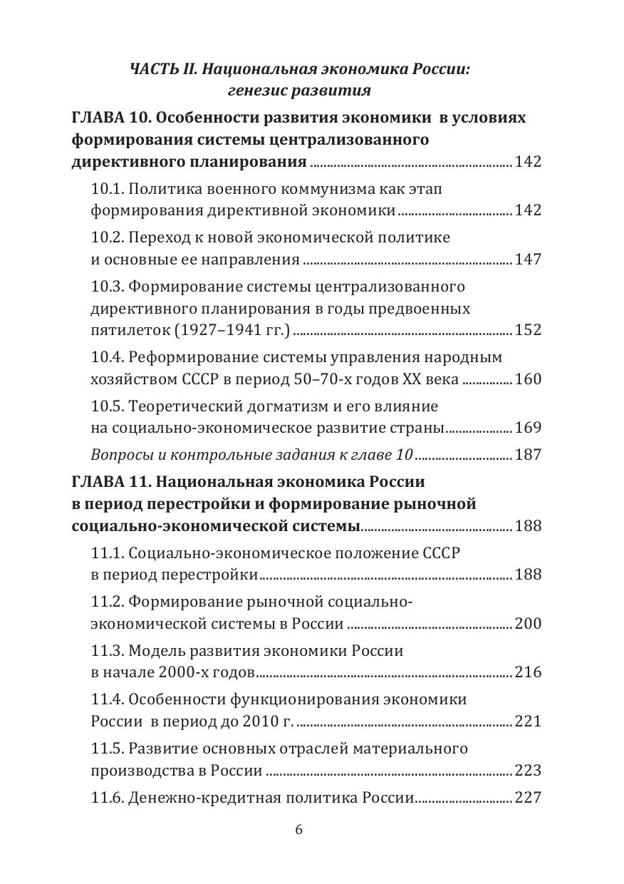 Вторая часть посвящена вопросам развития экономики России с первых послереволюционных лет и до настоящего времени. Проанализировано формирование экономики России в условиях централизованного директивного планирования, в период перестройки и перехода к рыночной социально-экономической системе. Вскрыты противоречия мировой экономической системы и показаны перспективы развития экономики России.