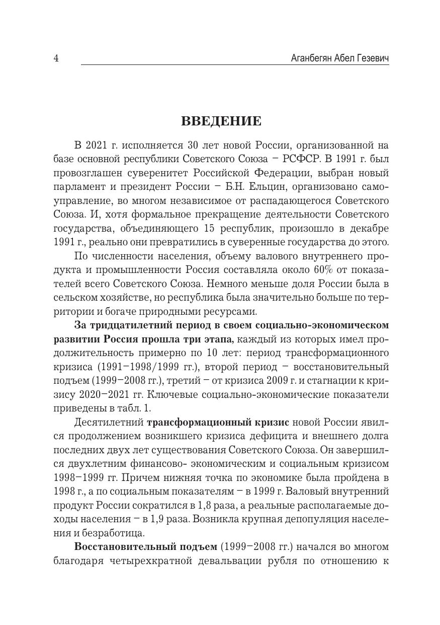Научная работа отражает результаты исследований, проводившихся на протяжении двух десятилетий ХХI столетия и посвященных вопросам периодизации социально-экономического развития Российской Федерации в период ее суверенизации и движения к демократическому правовому государству и рыночной экономике. Рассмотрены практические аспекты кризисных явлений и стагнации в российском народном хозяйстве на различных этапах построения рыночной экономической системы, выявлены их причины и характер, выделены актуальные методы и подходы к государственному регулированию различных сфер экономики постсоветской России. Проанализированы особенности социально-экономического развития Российской Федерации, определены экономическая специализация и перспективные направления стабилизации и подъема российской экономики с учетом влияния на нее политико-экономического, демографического, социального, сырьевого, инвестиционного факторов. Определены ключевые проблемы и направления устойчивого развития рыночной экономики с учетом российской специфики. Для преподавателей, научных работников, а также аспирантов и студентов.