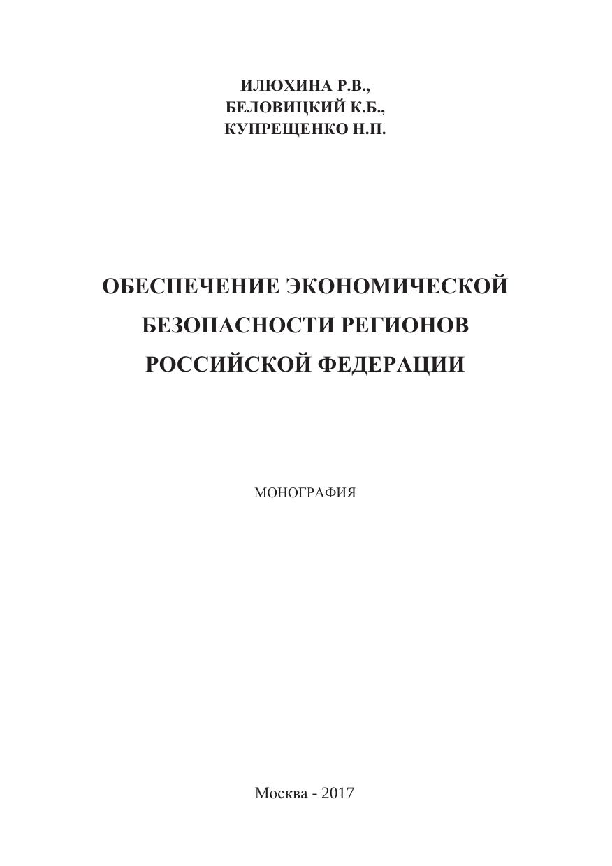 Обеспечение экономической безопасности регионов Российской Федерации