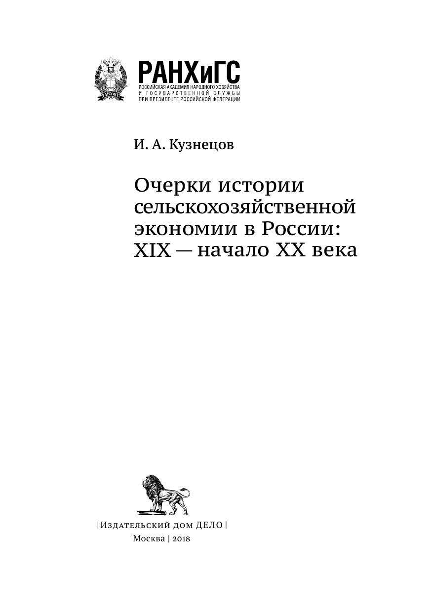 Очерки истории сельскохозяйственной экономии в России: XIX— начало ХХ века