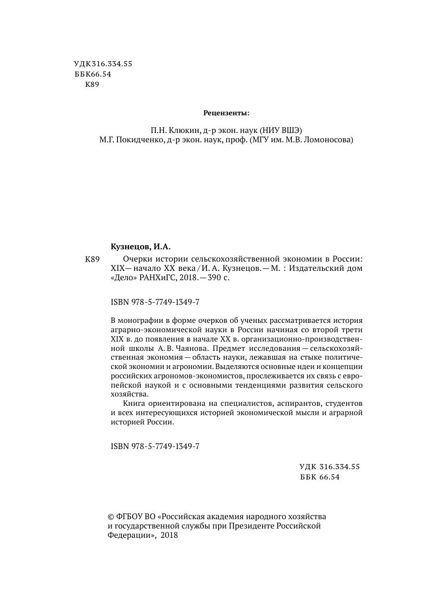 В монографии в форме очерков об ученых рассматривается история аграрно-экономической науки в России начиная со второй трети XIX в. до появления в начале XX в. организационно-производственной школы А. В. Чаянова. Предмет исследования — сельскохозяйственная экономия — область науки, лежавшая на стыке политической экономии и агрономии. Выделяются основные идеи и концепции российских агрономов-экономистов, прослеживается их связь с европейской наукой и с основными тенденциями развития сельского хозяйства. Книга ориентирована на специалистов, аспирантов, студентов и всех интересующихся историей экономической мысли и аграрной историей России.