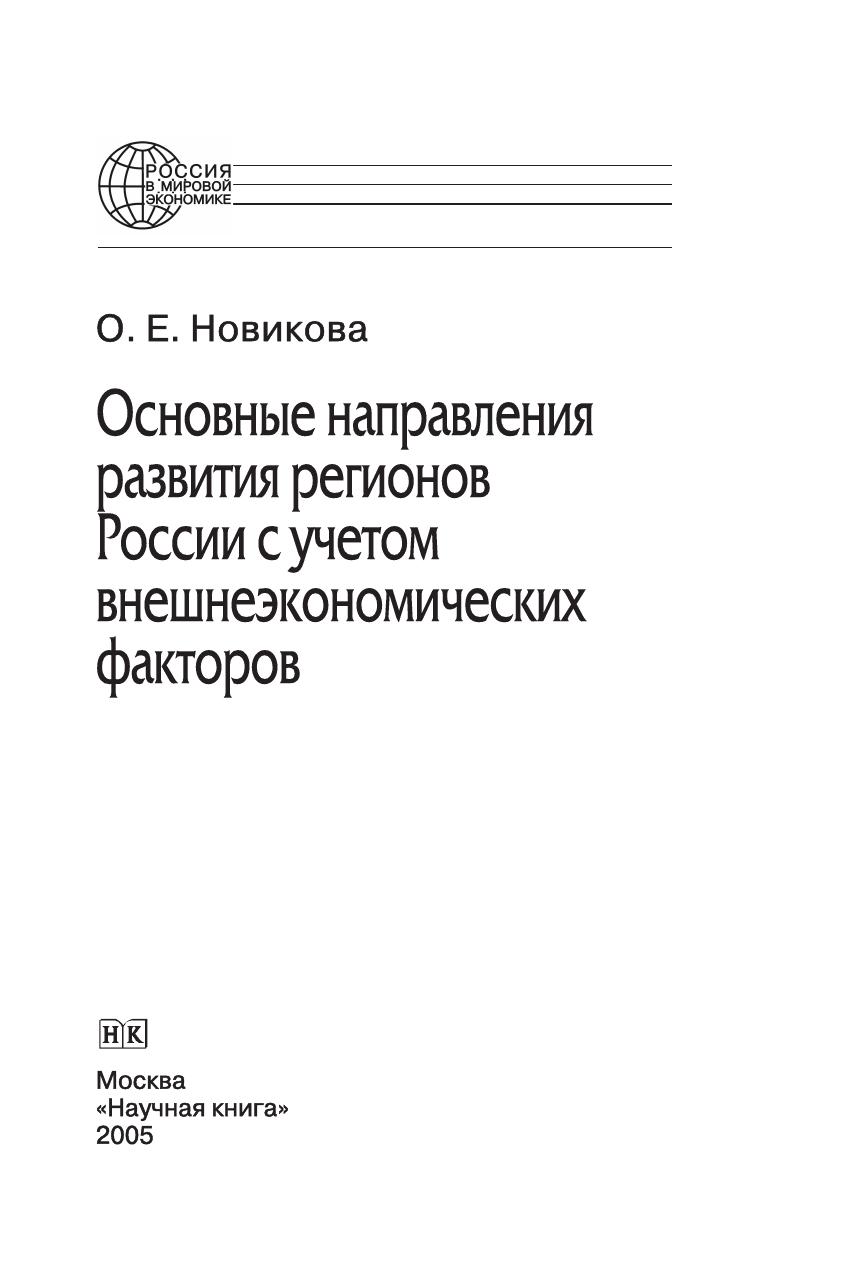 Основные направления развития регионов России с учетом внешнеэкономических факторов