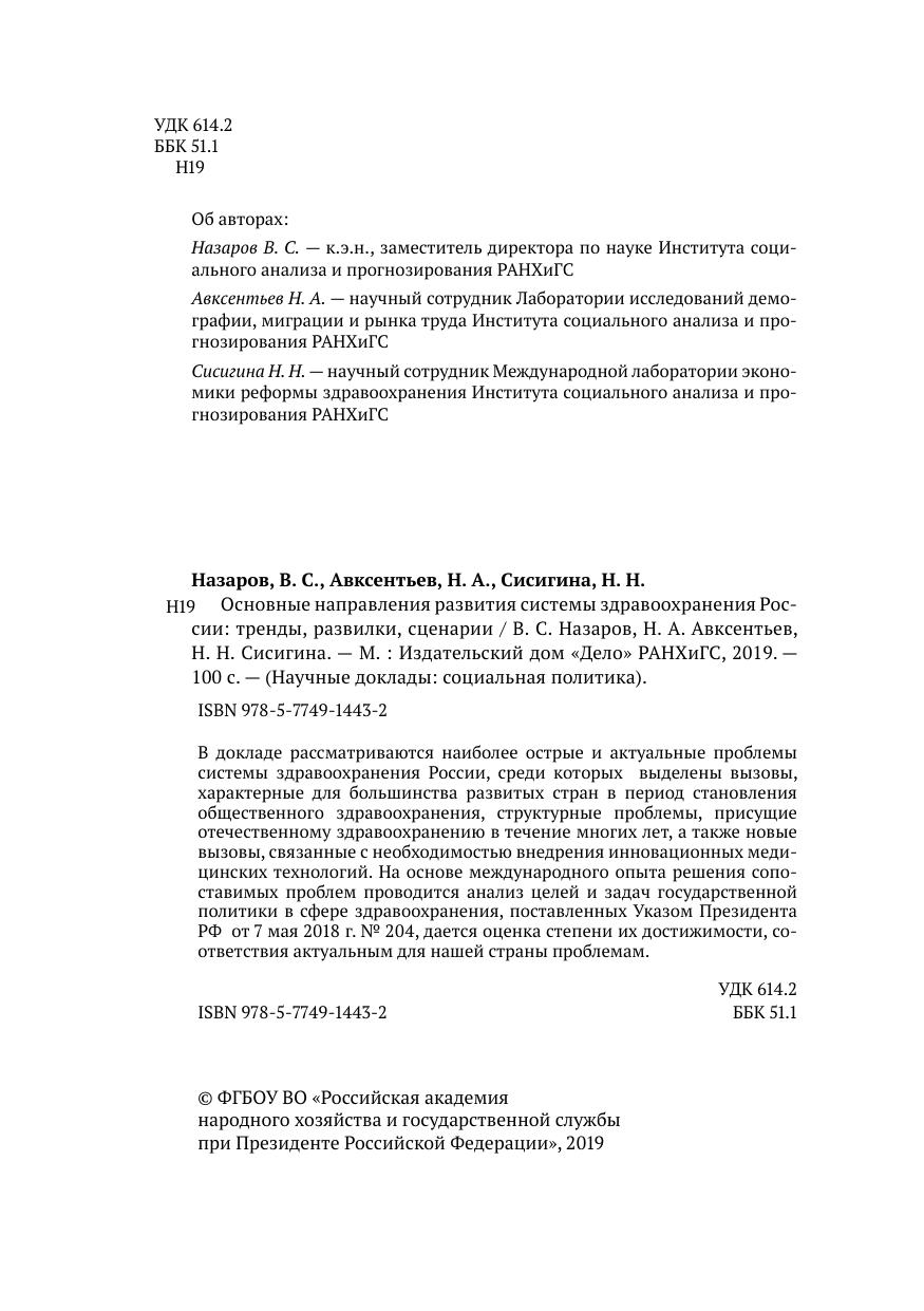 Основные направления развития системы здравоохранения РосОсновные направления развития системы здравоохранения России: тренды, развилки, сценарии