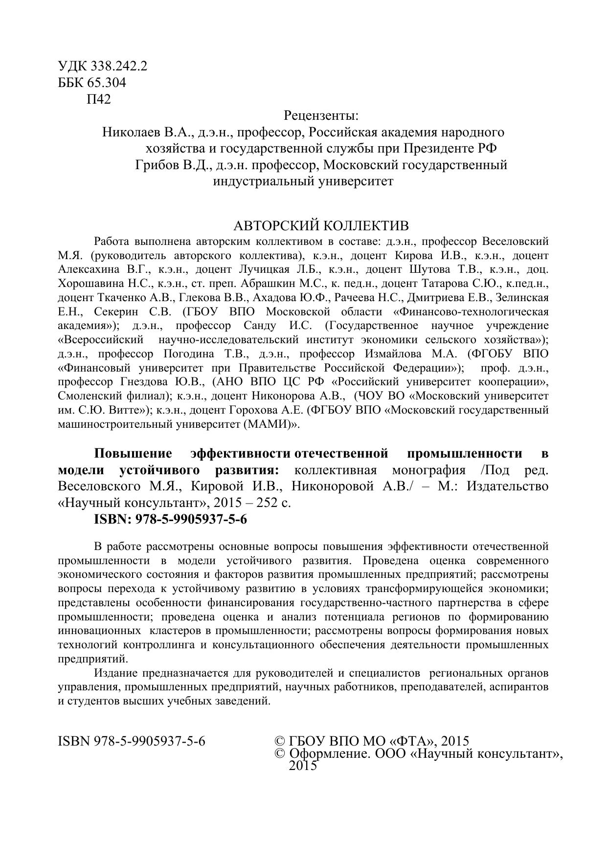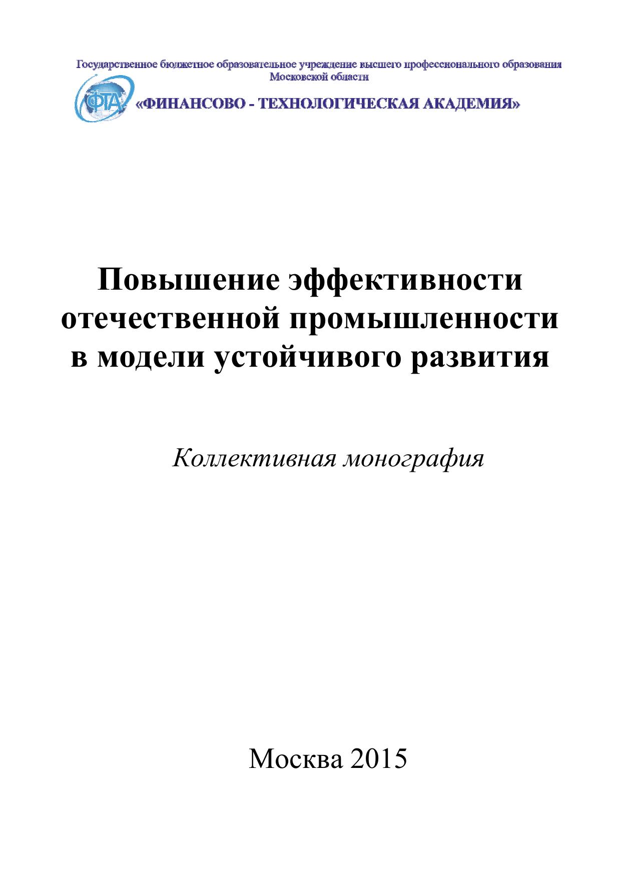 Повышение эффективности отечественной промышленности в модели устойчивого развития: коллективная монография