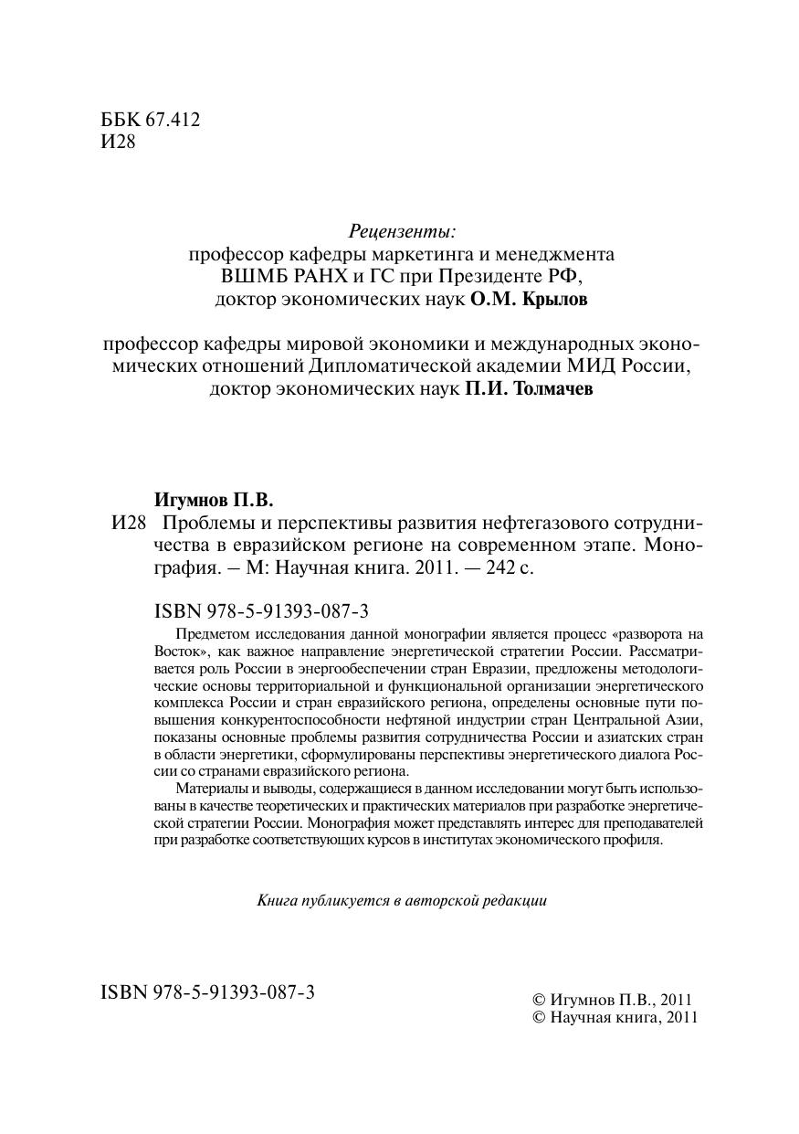 Проблемы и перспективы развития нефтегазового сотрудничества в евразийском регионе на современном этапе. Монография
