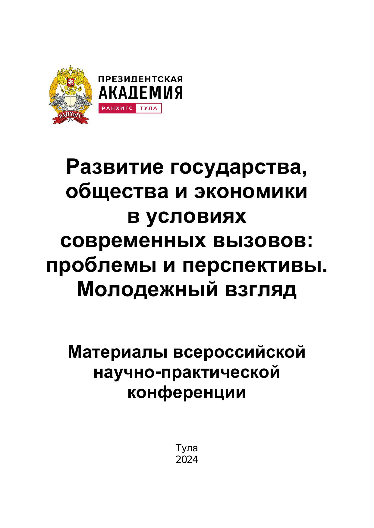 Развитие государства, общества и экономики в условиях современных вызовов: проблемы и перспективы. Молодежный взгляд: Материалы всероссийской научно-практической конференции студентов, магистрантов, аспирантов 4-5 апреля 2024 г.