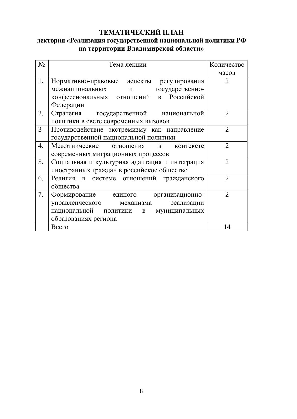 Реализация государственной национальной политики Российской Федерации на региональном уровне: лекторий и практикум программы повышения квалификации государственных и муниципальных служащих