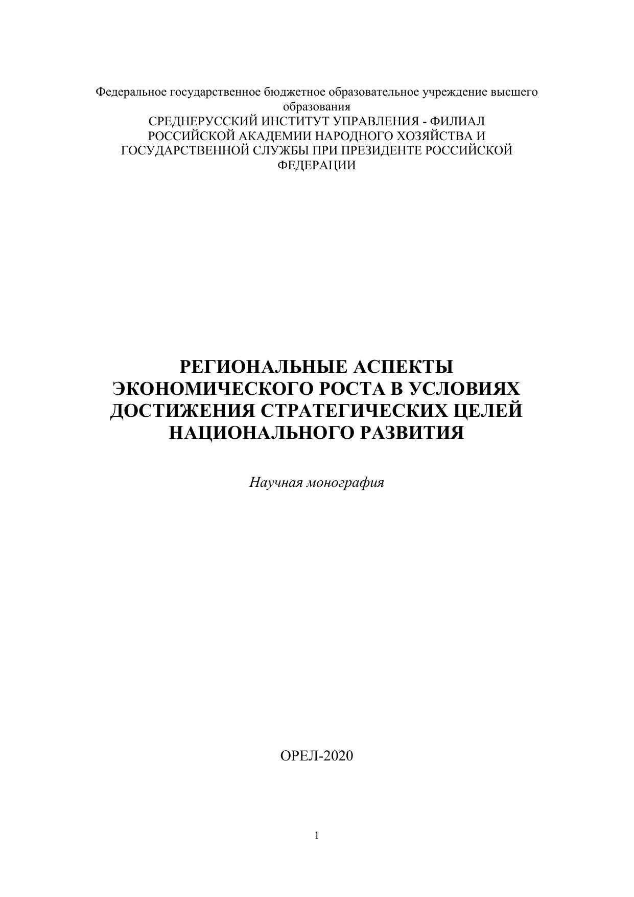 Региональные аспекты экономического роста в условиях достижения стратегических целей национального развития