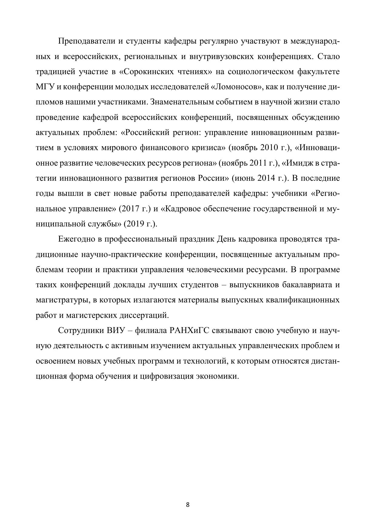 Данное издание посвящено 10-летию подготовки специалистов по управ-лению персоналом в ВИУ – филиале РАНХиГС. Поэтому на страницах этой ра-боты представлена коллективная монография преподавателей «Национальные проекты цифровизации экономики: региональный уровень» и сборник статей по материалам докладов, представленных на VI внутривузовской научно-практиче-ской конференции, посвященной Дню работников кадровой службы «Управле-ние персоналом в современных организациях: актуальные проблемы и эффек-тивные решения», проходившей 30 мая 2020 года. Адресуется широкому кругу специалистов в области гуманитарного знания.