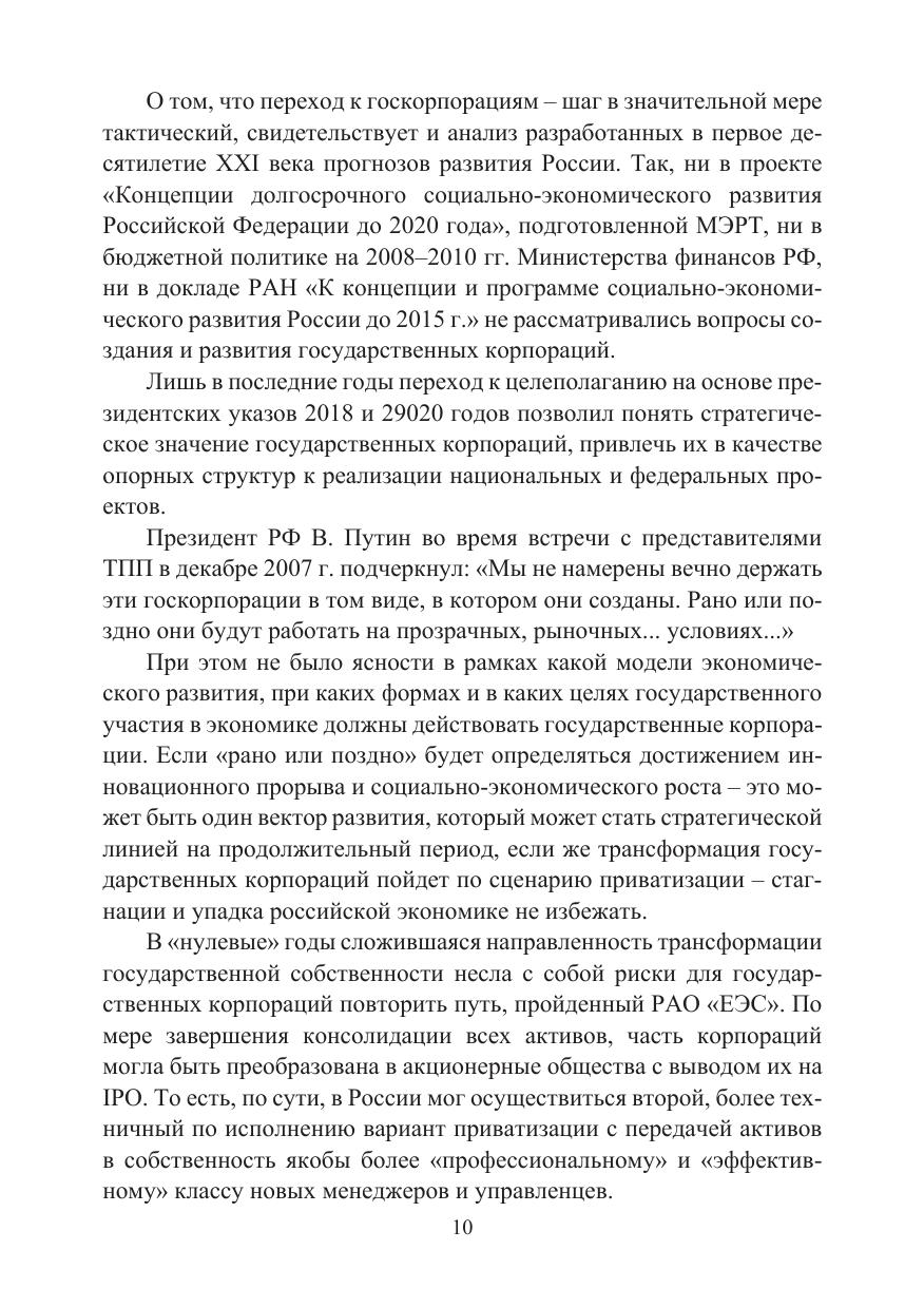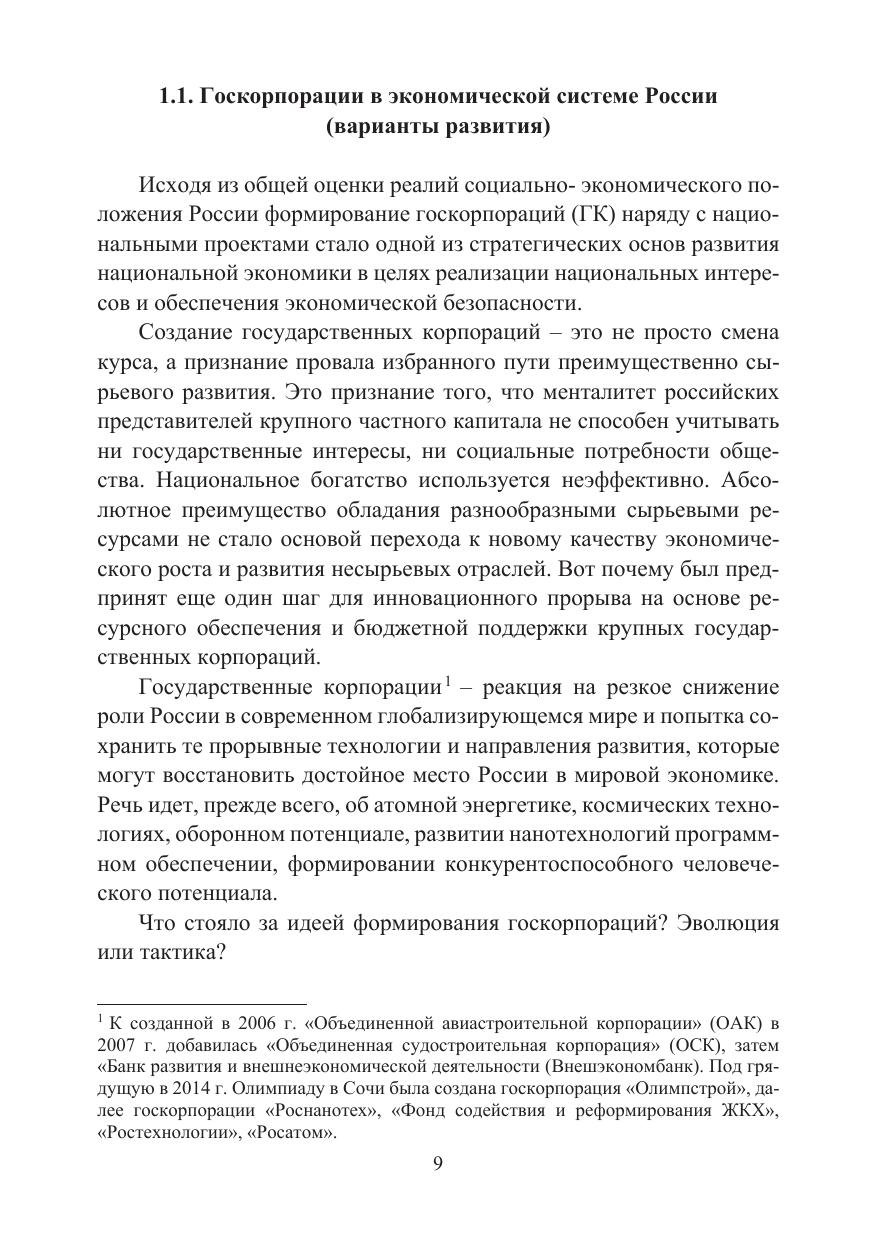 В монографии раскрываются цели и задачи создания государственных корпораций, проблемы становления и этапы развития. Даны различные взгляды и оценки роли государственных корпораций в российской экономике. Показано, каким образом переход к стратегическому целеполаганию и планированию, более активной промышленной политике способствует консолидации потенциала госкорпораций на достижение целей национального развития.