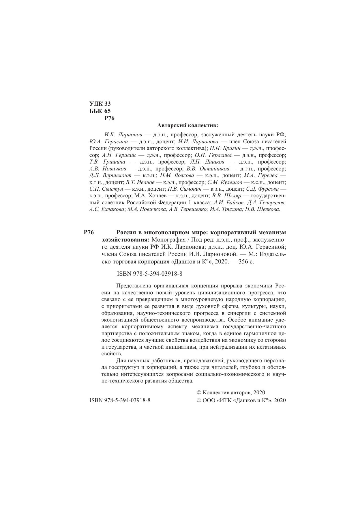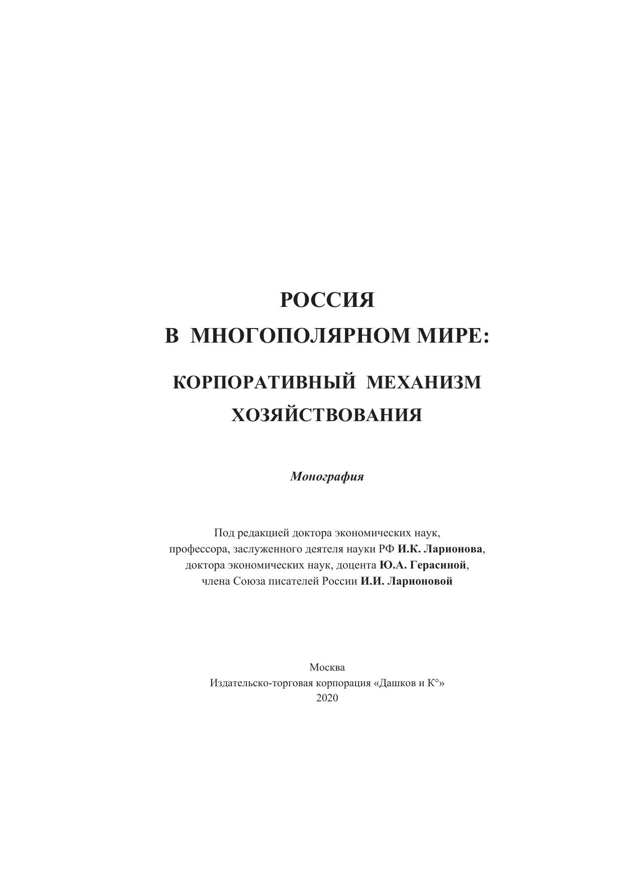 Россия в многополярном мире: корпоративный механизм хозяйствования