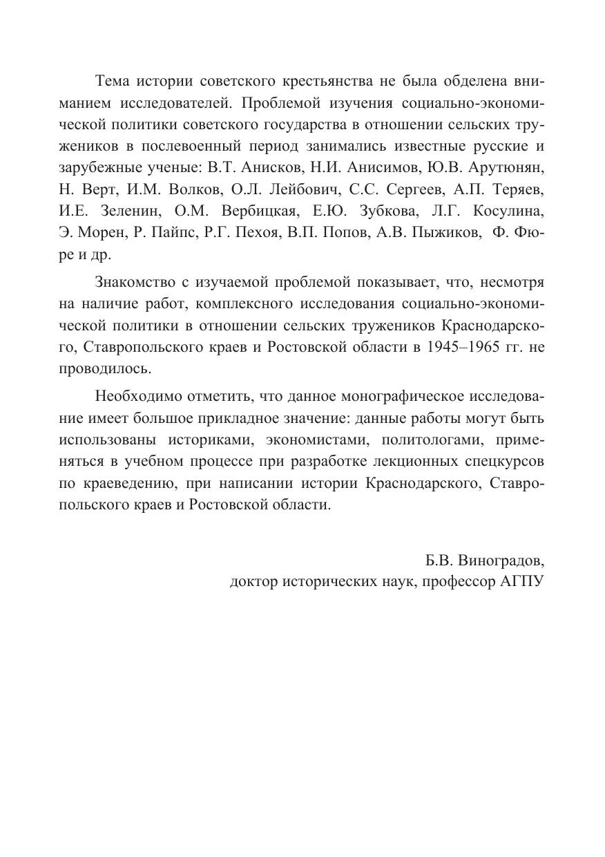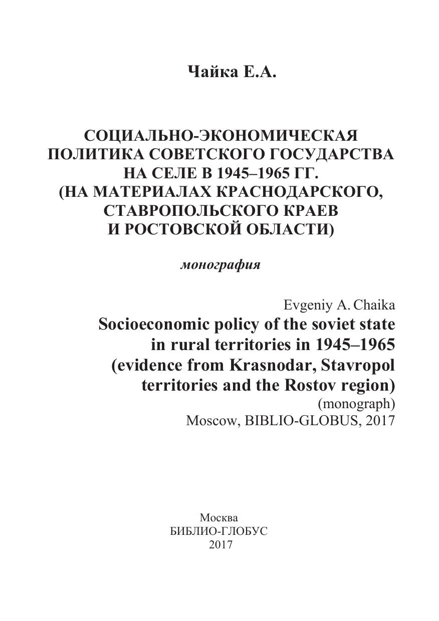 Социально-экономическая политика советского государства на селе в 1945–1965 гг. (на материалах Краснодарского, Ставропольского краев и Ростовской области)