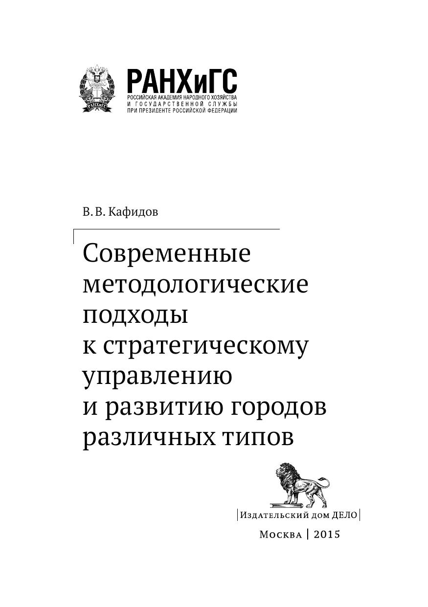 Современные методологические подходы к стратегическому управлению и развитию городов различных типов