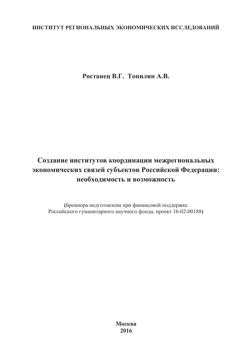 Создание институтов координации межрегиональных экономических связей субъектов Российской Федерации: необходимость и возможность