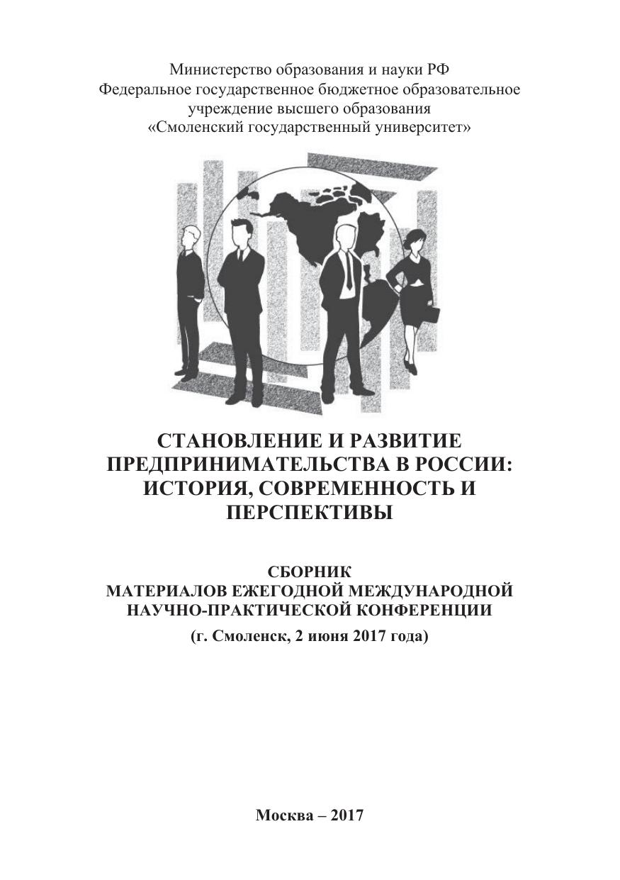 В сборнике международной научно-практической конференции «Становление и развитие предпринимательства в России: история, современность и перспективы» представлены результаты исследований ученых-экономистов, в том числе молодых ученых, а также хозяйственных практиков городов Москвы, Смоленска, Санкт-Петербурга, Севастополя, Грозного, Республика Беларусь, Республика Польша и ряда других регионов.