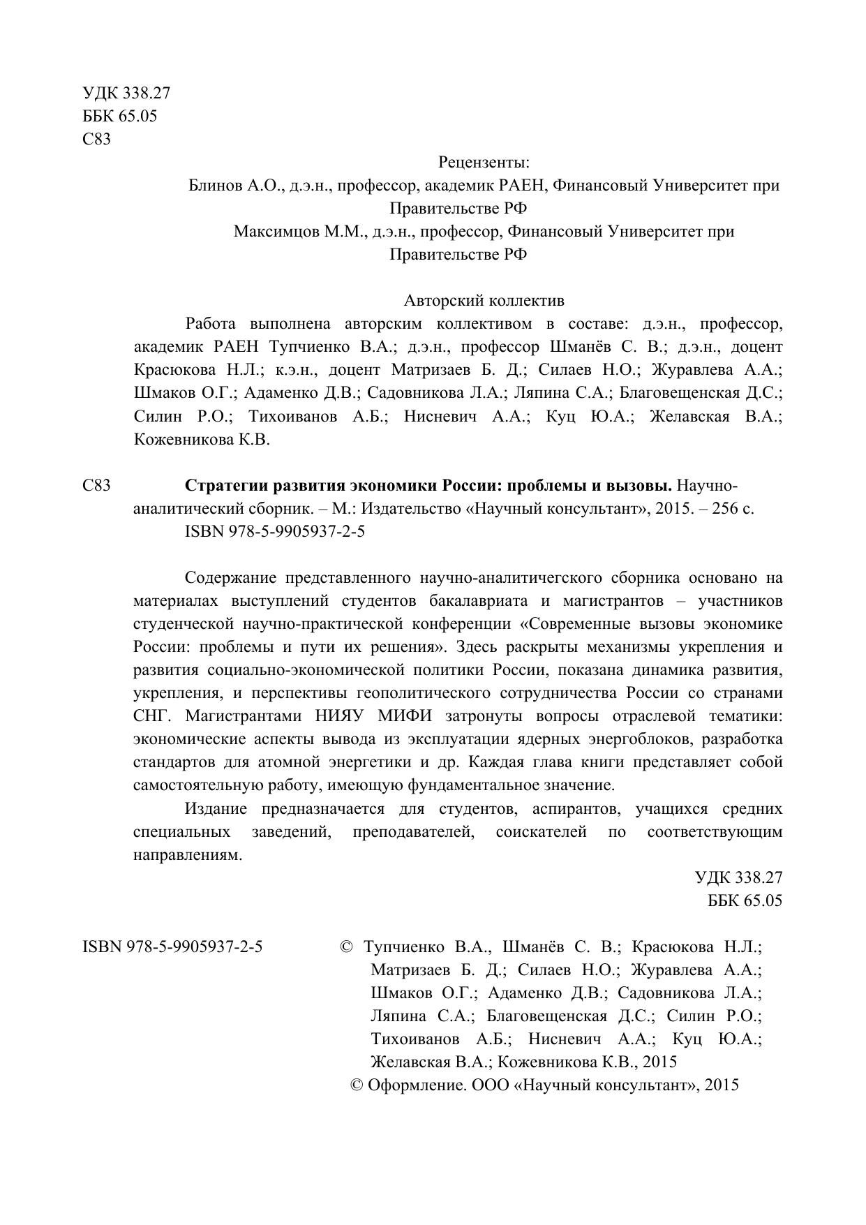 Стратегии развития экономики России: проблемы и вызовы. Научно-аналитический сборник