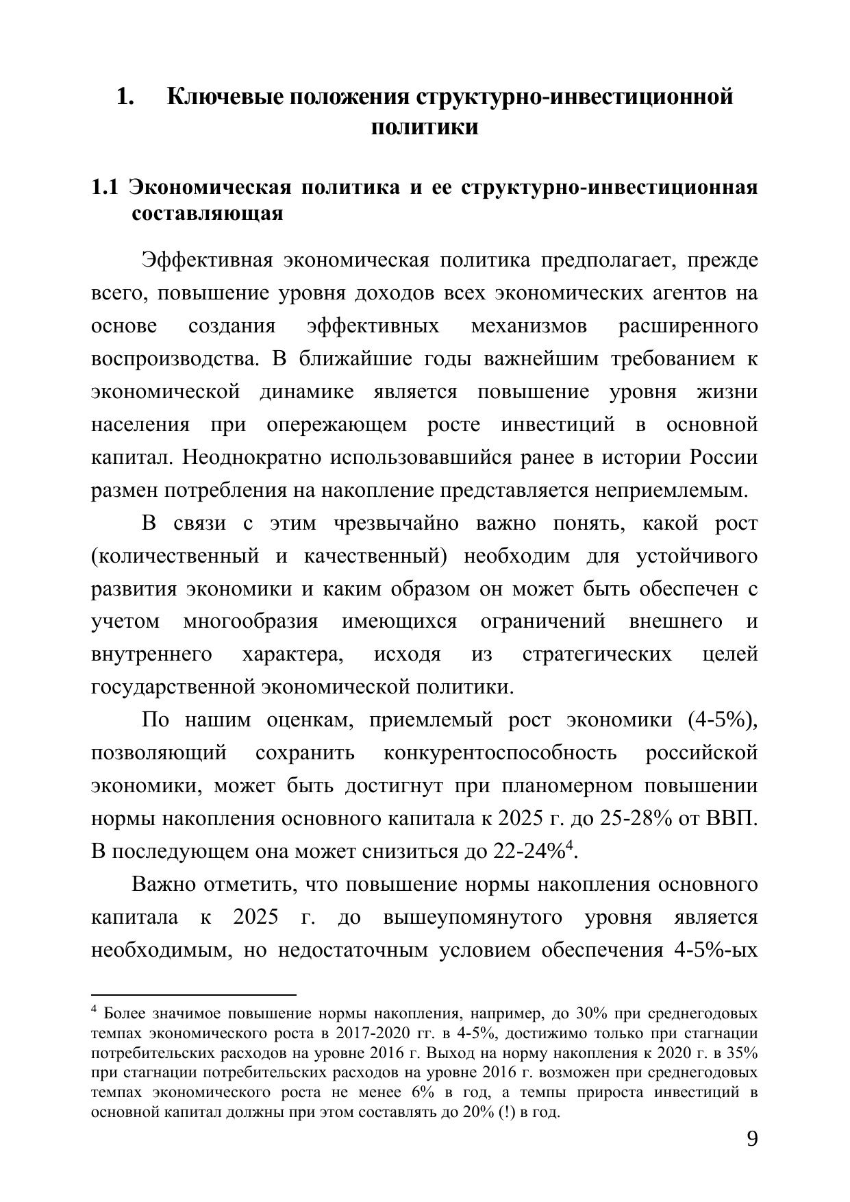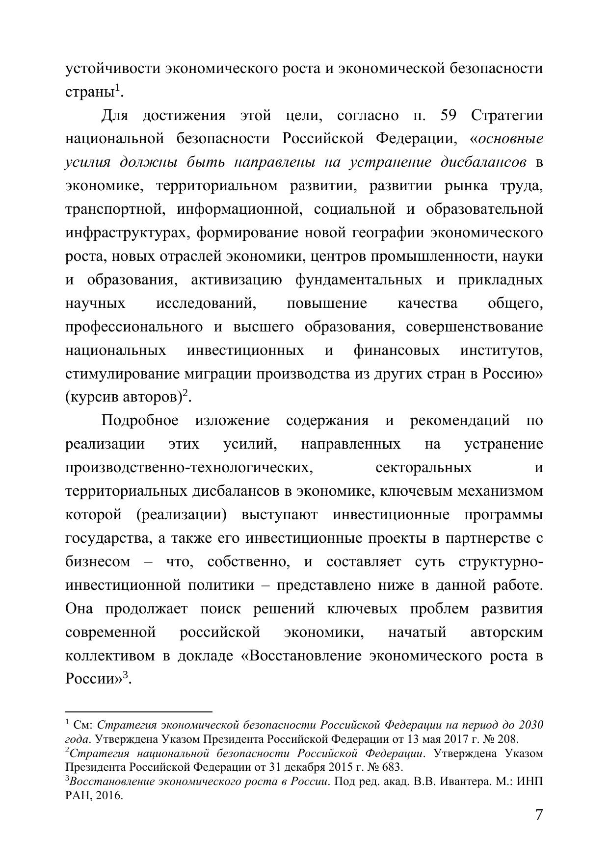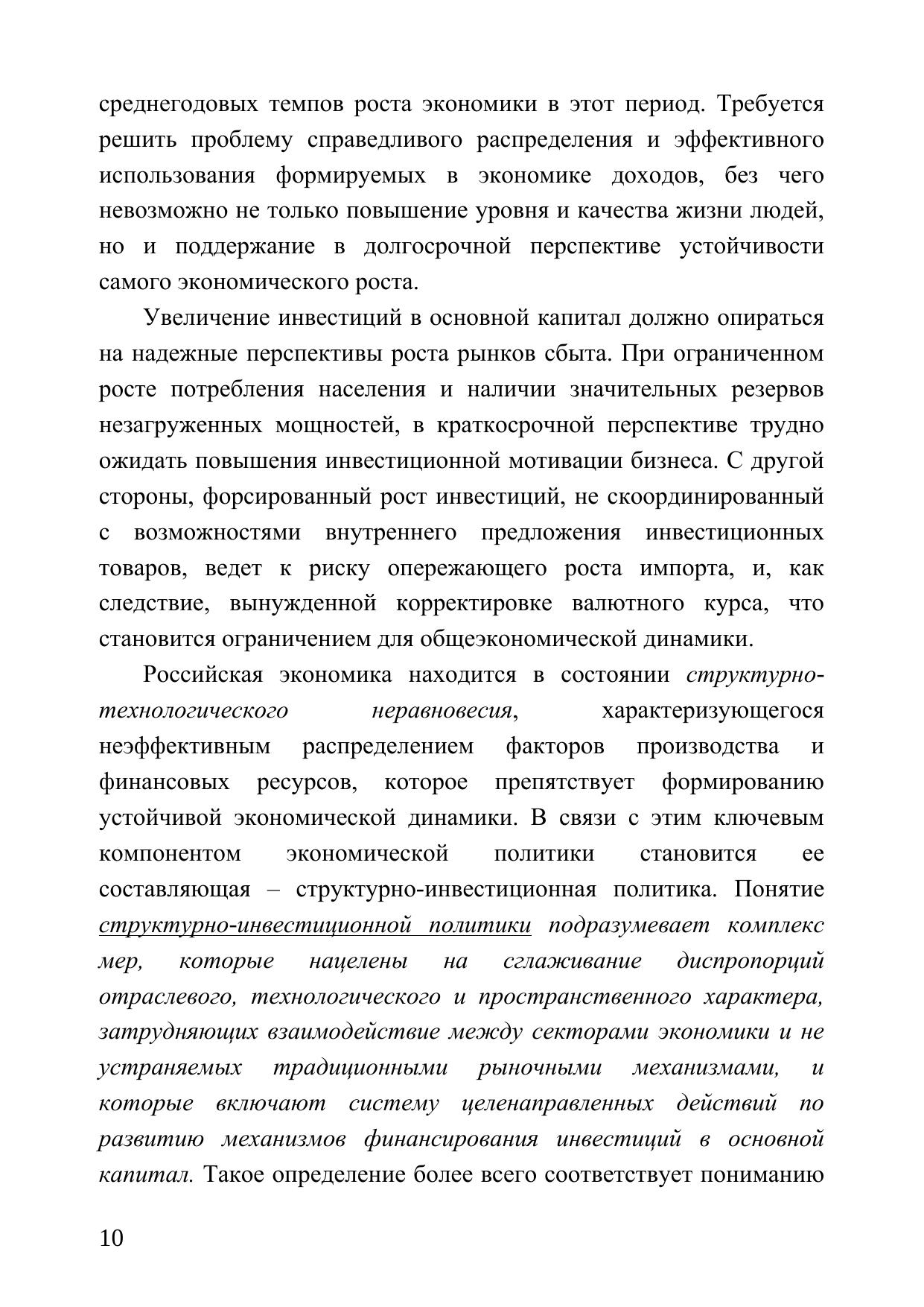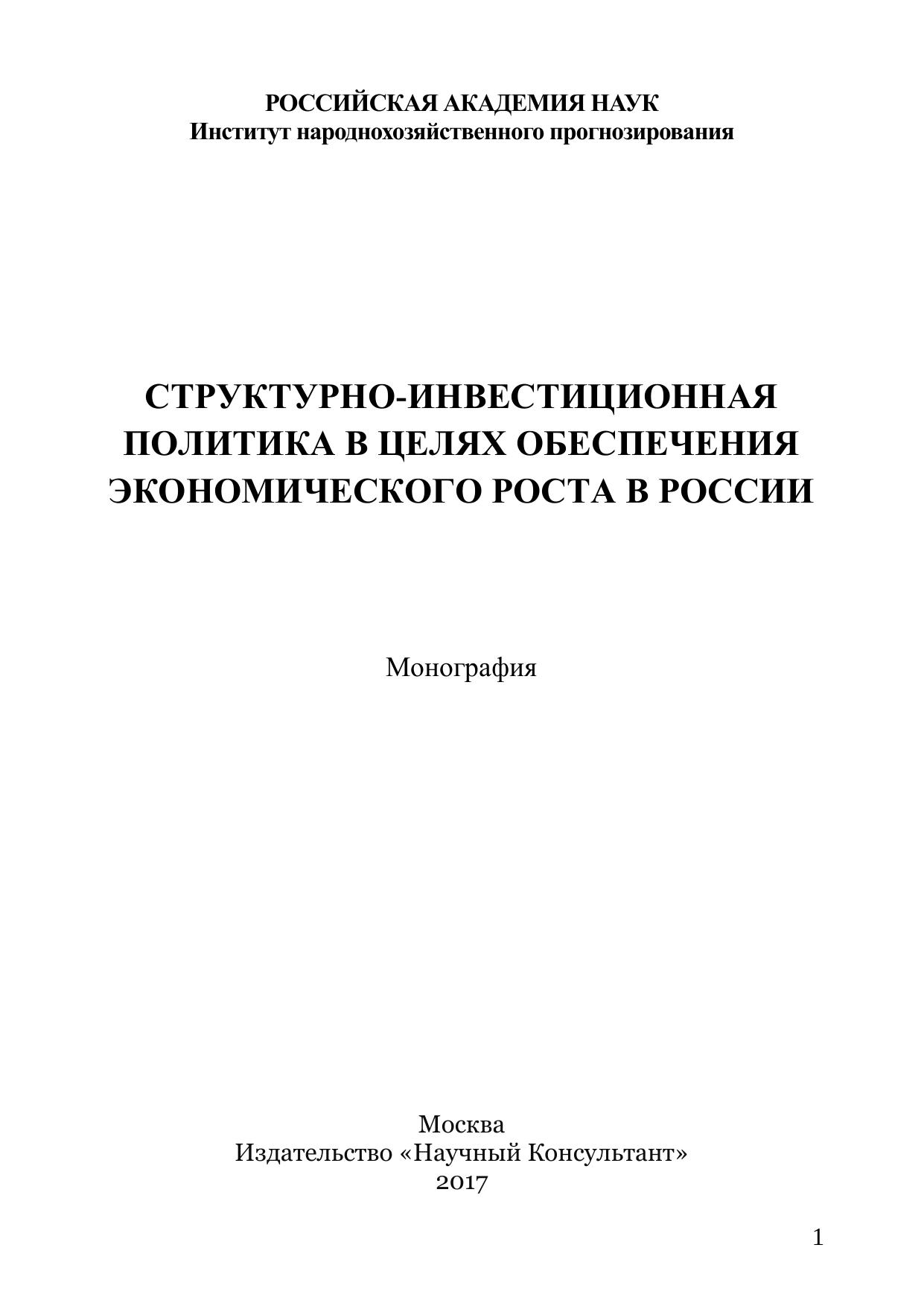 Структурно-инвестиционная политика в целях обеспечения экономического роста в России
