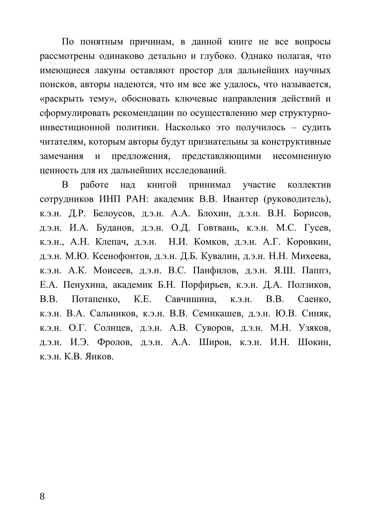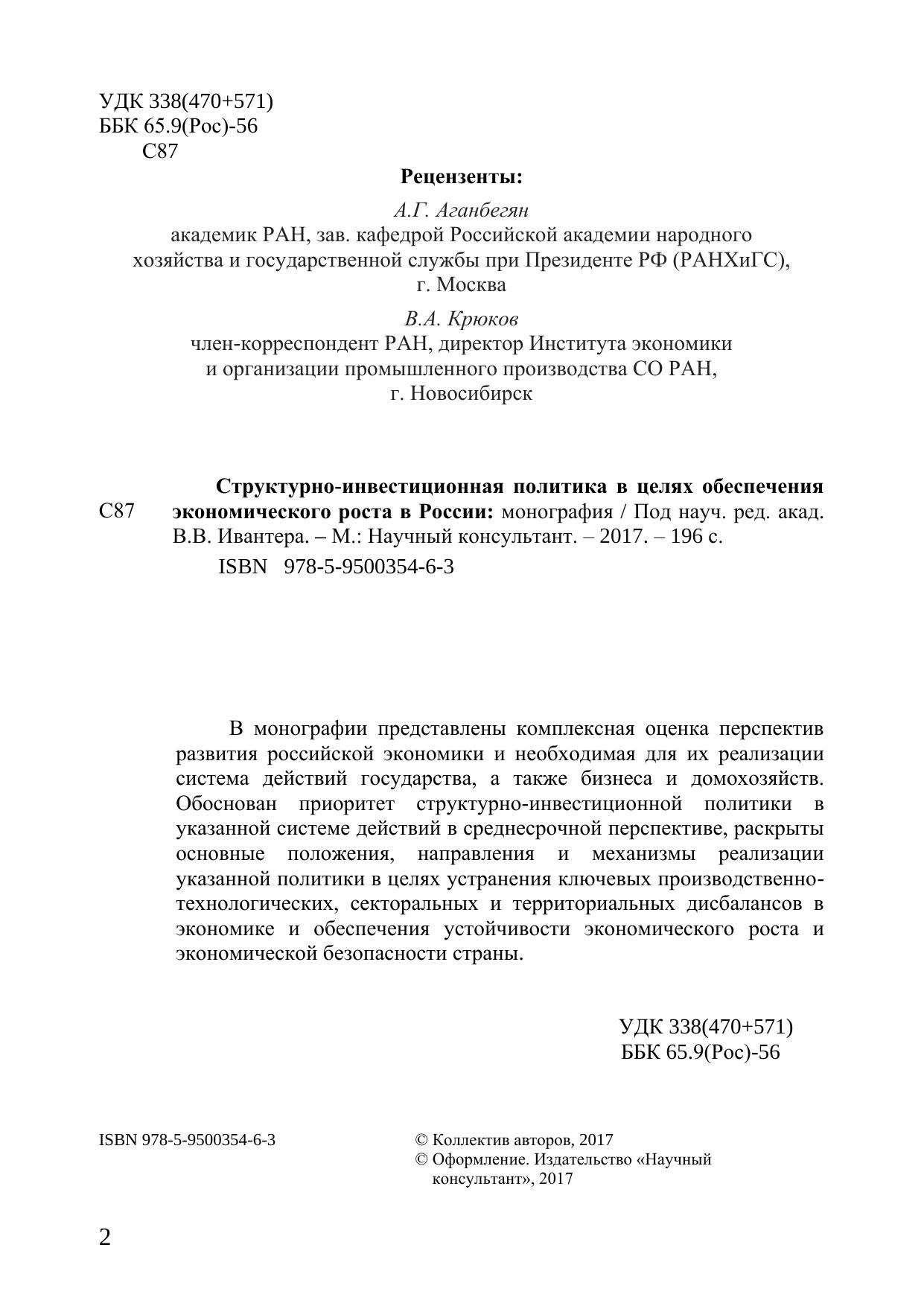 В монографии представлены комплексная оценка перспектив развития российской экономики и необходимая для их реализации система действий государства, а также бизнеса и домохозяйств. Обоснован приоритет структурно-инвестиционной политики в указанной системе действий в среднесрочной перспективе, раскрыты