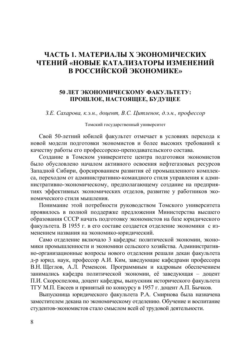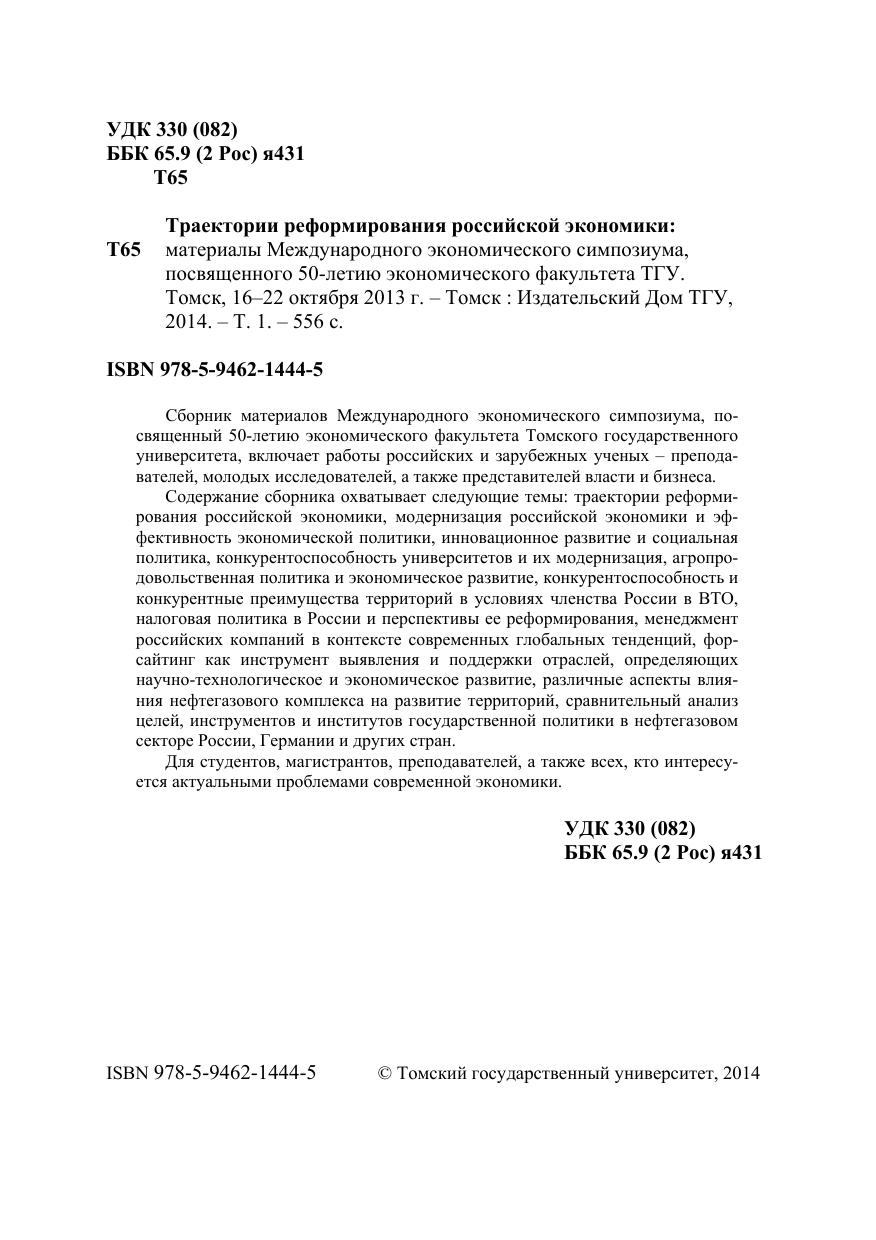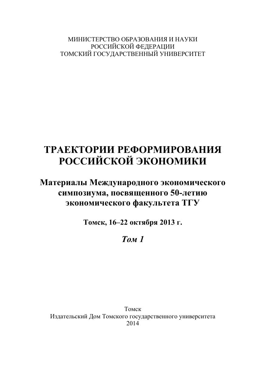 Траектории реформирования российской экономики: материалы Международного экономического симпозиума, посвященного 50-летию экономического факультета ТГУ. Томск, 16–22 октября 2013 г. Т. 1