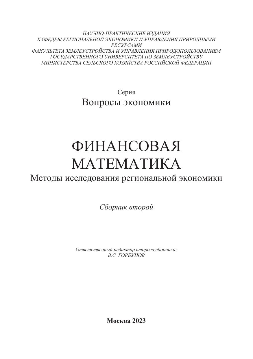 Финансовая математика: методы исследования региональной экономики. Сборник второй