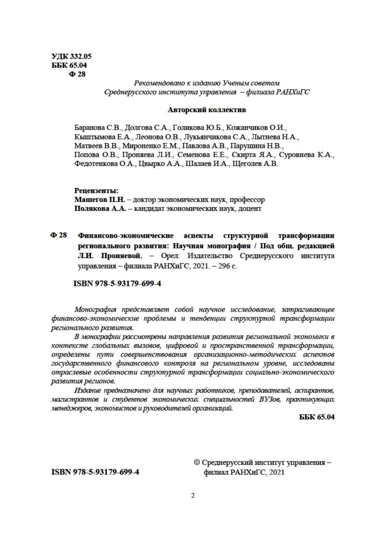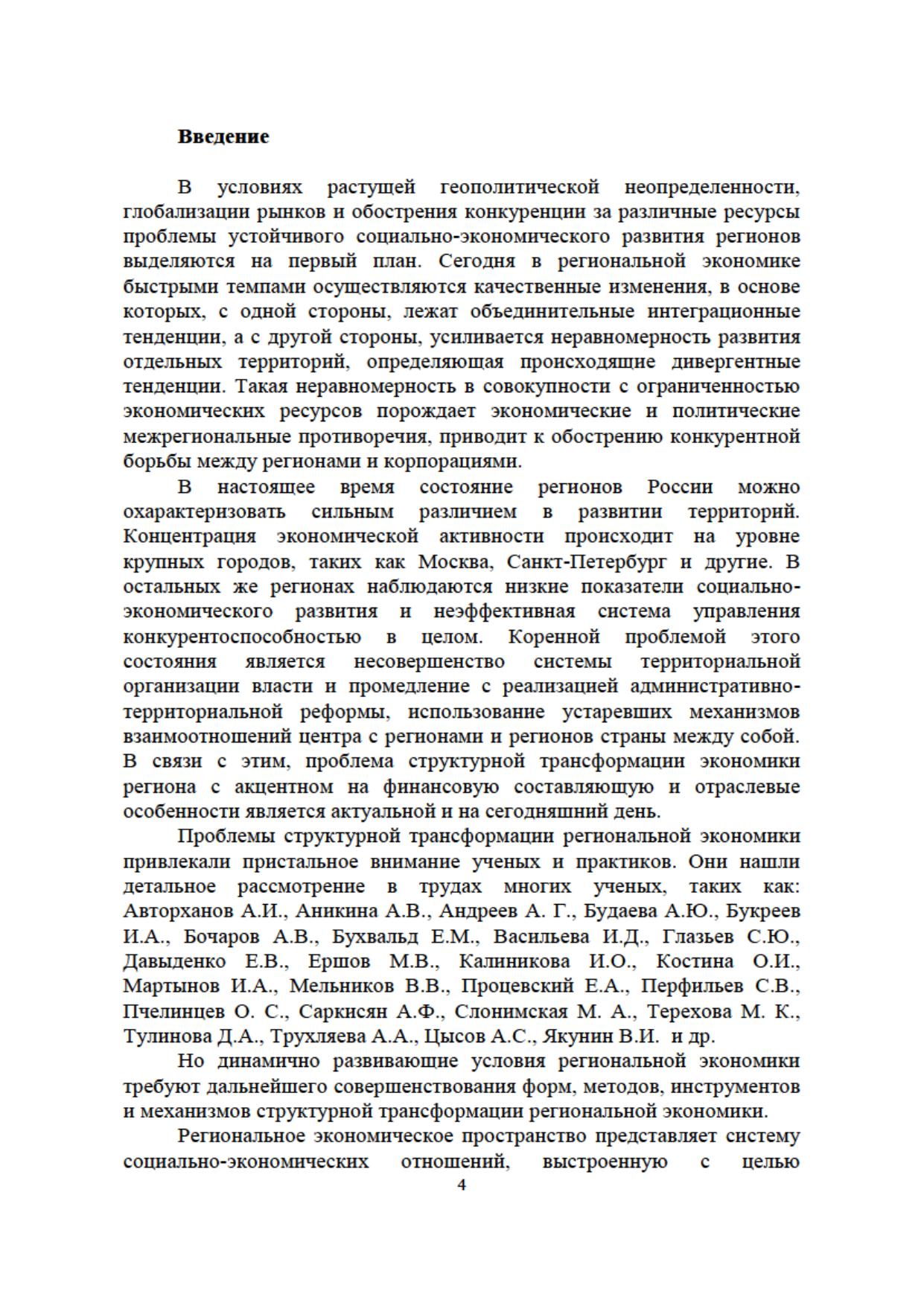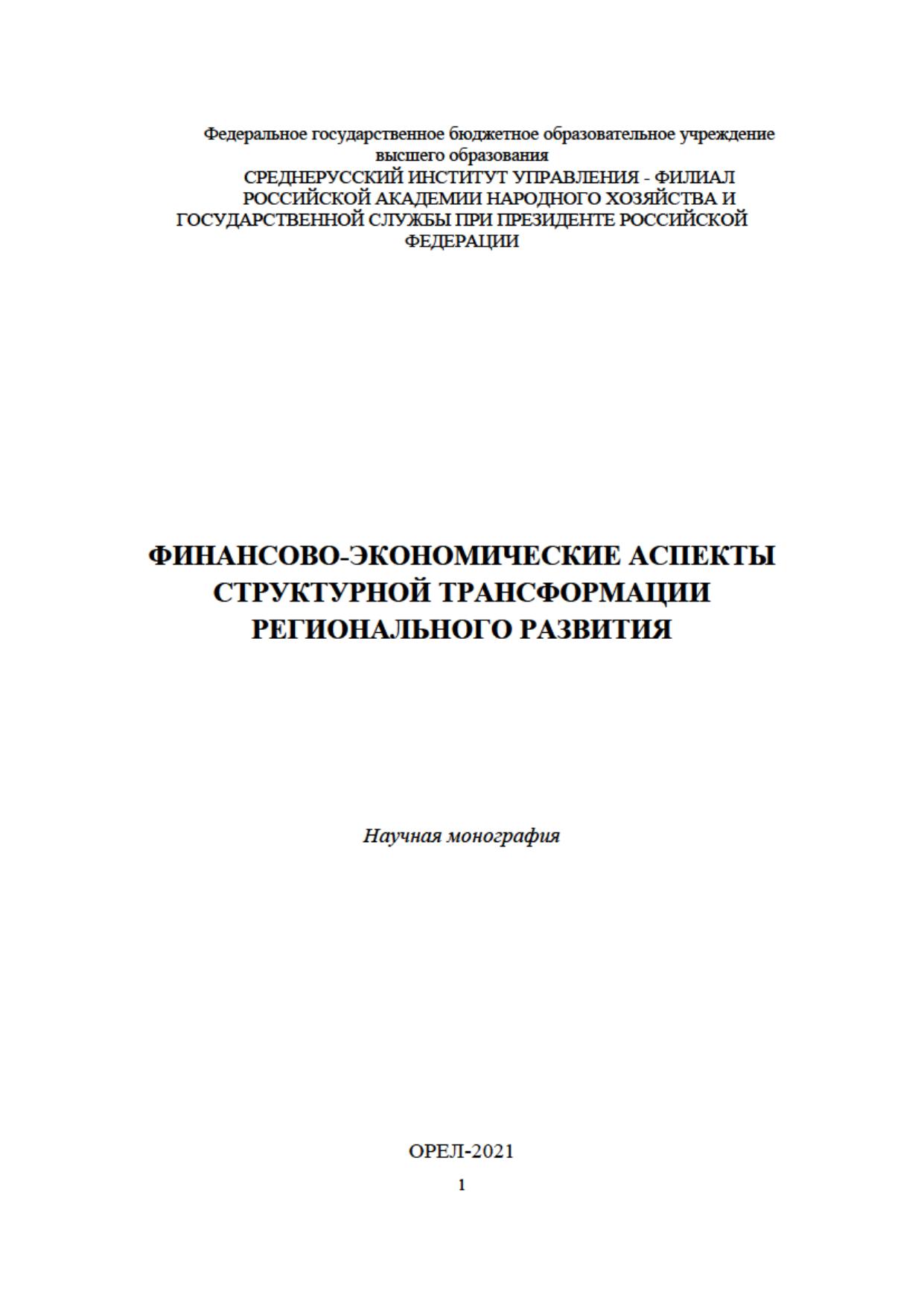 Финансово-экономические аспекты структурной трансформации регионального развития