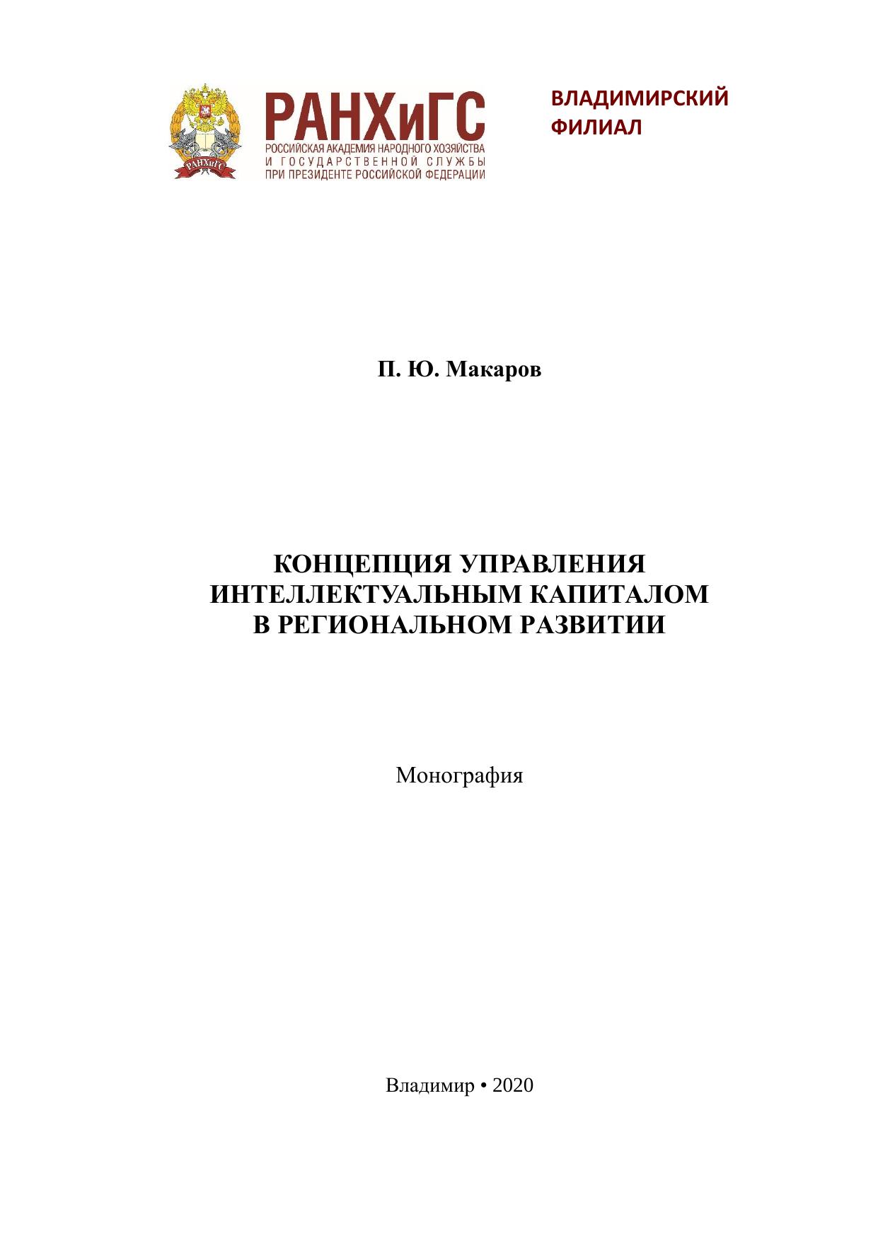 Концепция управления интеллектуальным капиталом в региональном развитии