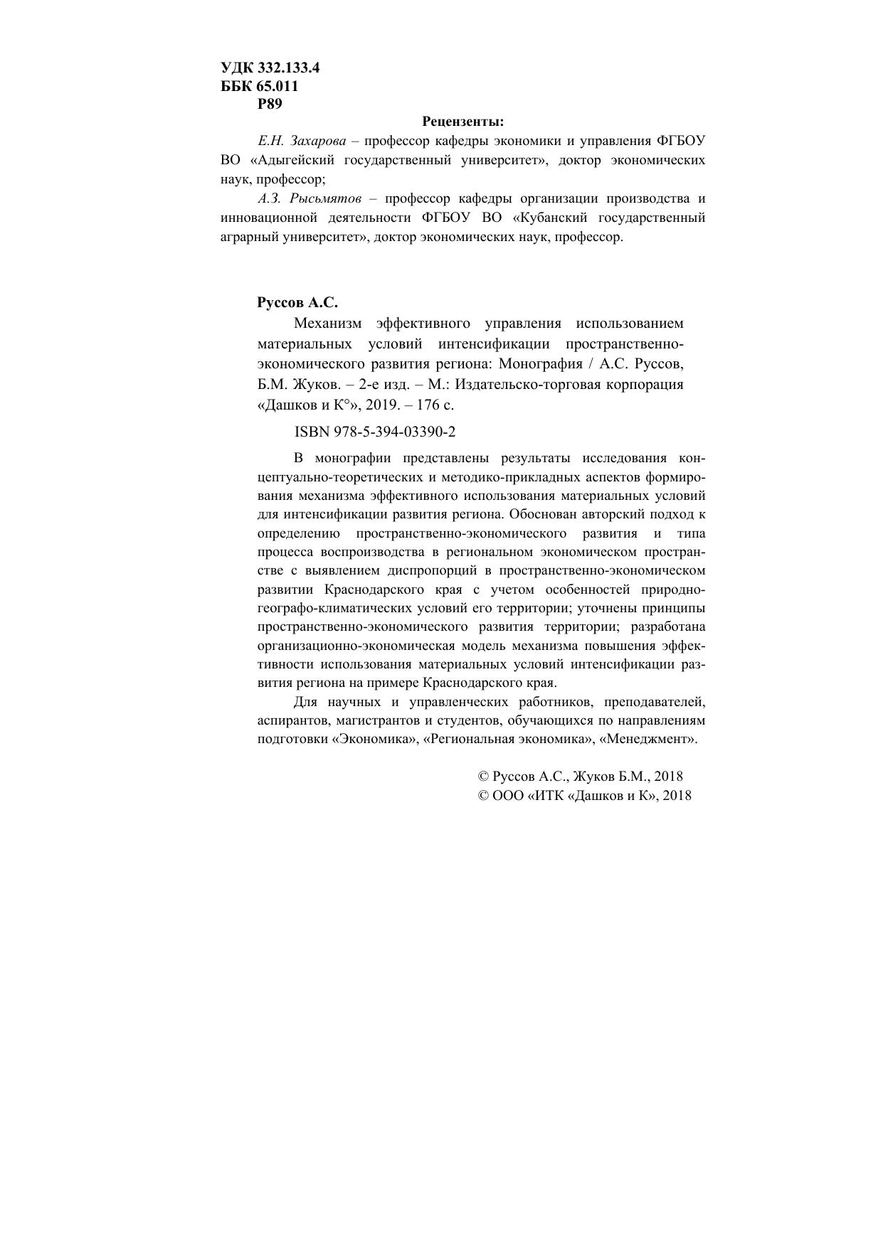 В монографии представлены результаты исследования концептуально-теоретических и методико-прикладных аспектов формирования механизма эффективного использования материальных условий для интенсификации развития региона. Обоснован авторский подход к определению пространственно-экономического развития и типа процесса воспроизводства в региональном экономическом пространстве с выявлением диспропорций в пространственно-экономическом развитии Краснодарского края с учетом особенностей природно-географо-климатических условий его территории; уточнены принципы пространственно-экономического развития территории; разработана организационно-экономическая модель механизма повышения эффективности использования материальных условий интенсификации развития региона на примере Краснодарского края. Для научных и управленческих работников, преподавателей, аспирантов, магистрантов и студентов, обучающихся по направлениям подготовки «Экономика», «Региональная экономика», «Менеджмент».