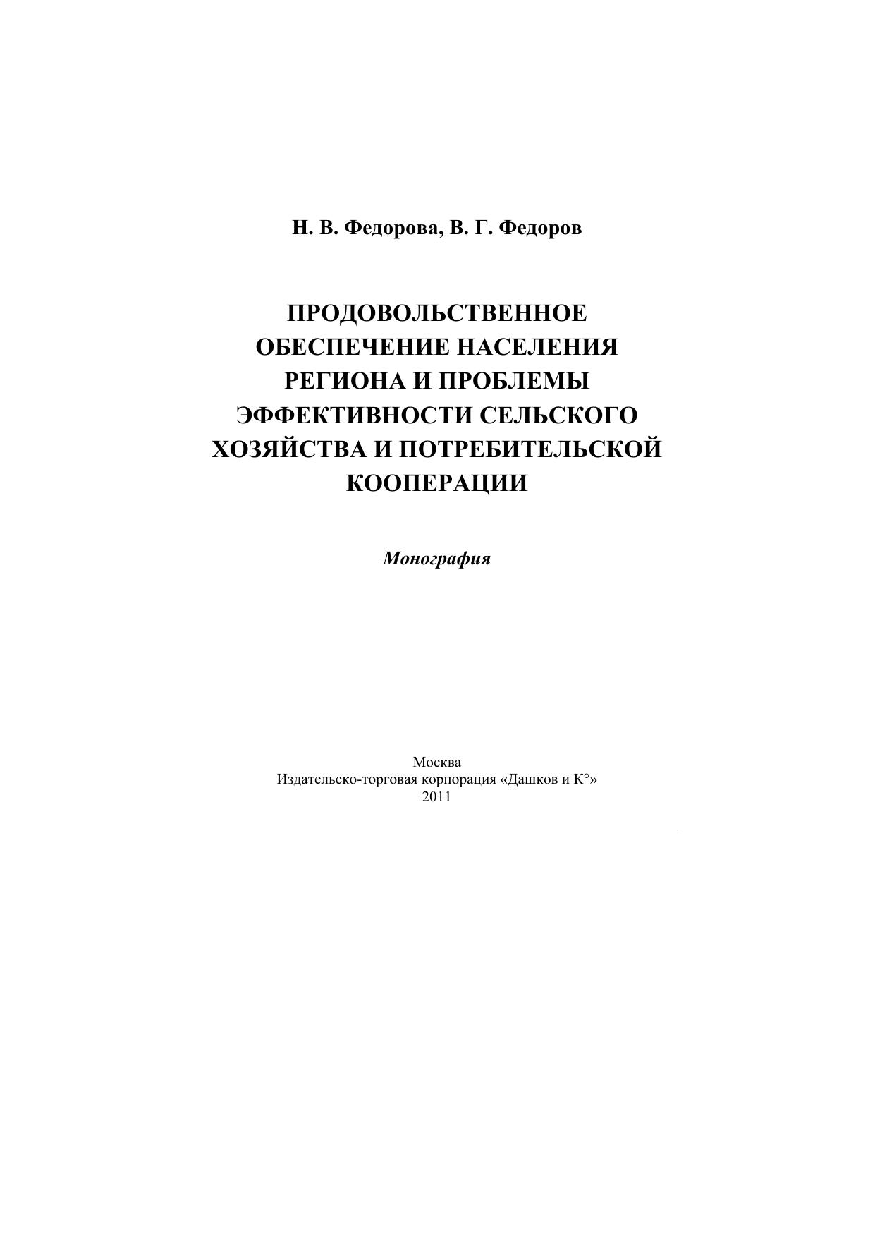 Продовольственное обеспечение населения региона и проблемы эффективности сельского хозяйства и потребительской кооперации: Монография