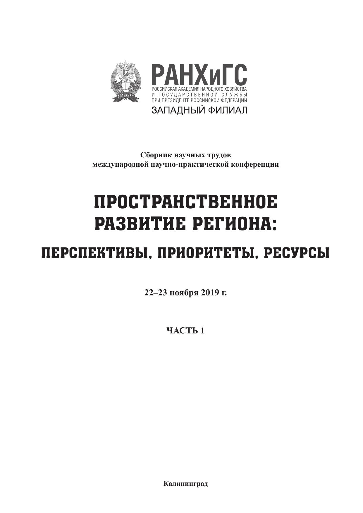 Пространственное развитие региона: перспективы, приоритеты, ресурсы: Сборник научных трудов международной научно-практической конференции 22–23 ноября 2019 г. - В 2 ч. Ч. 1