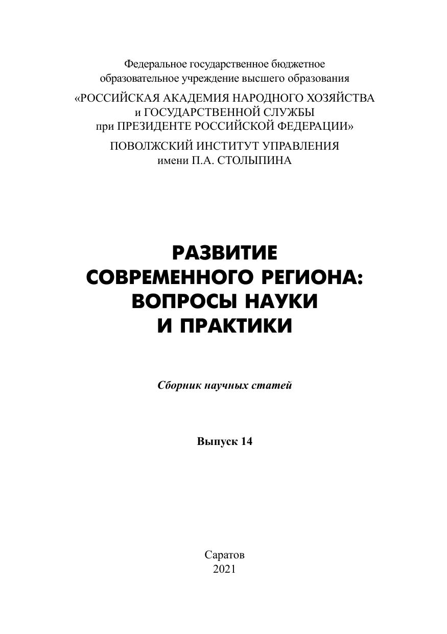 Развитие современного региона: вопросы науки и практики: сборник научных статей. 14.