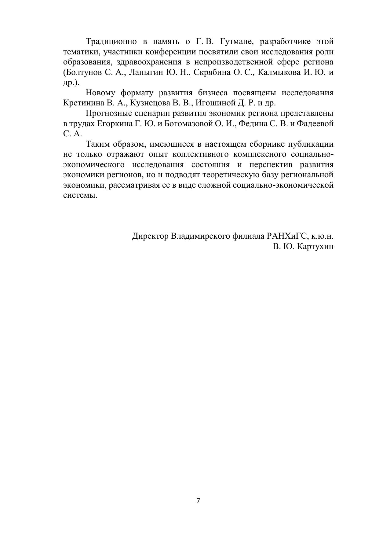 Сборник включает материалы XIII Международной научно-практической конференции (Гутманские чтения) по теории, проблемам и практике развития региональной экономики, состоявшейся 15 мая 2020 года во Владимирском филиале Российской академии народного хозяйства и государственной службы при Президенте Российской Федерации. Основу сборника составляют научные статьи коллег и учеников доктора экономических наук, профессора Гутмана Геральда Викторовича, памяти которого конференция традиционно посвящена. Предназначается для руководителей и специалистов органов власти и управления, преподавателей, аспирантов и студентов экономических специальностей вузов. Печатается по решению ученого совета Владимирского филиала РАНХиГС.