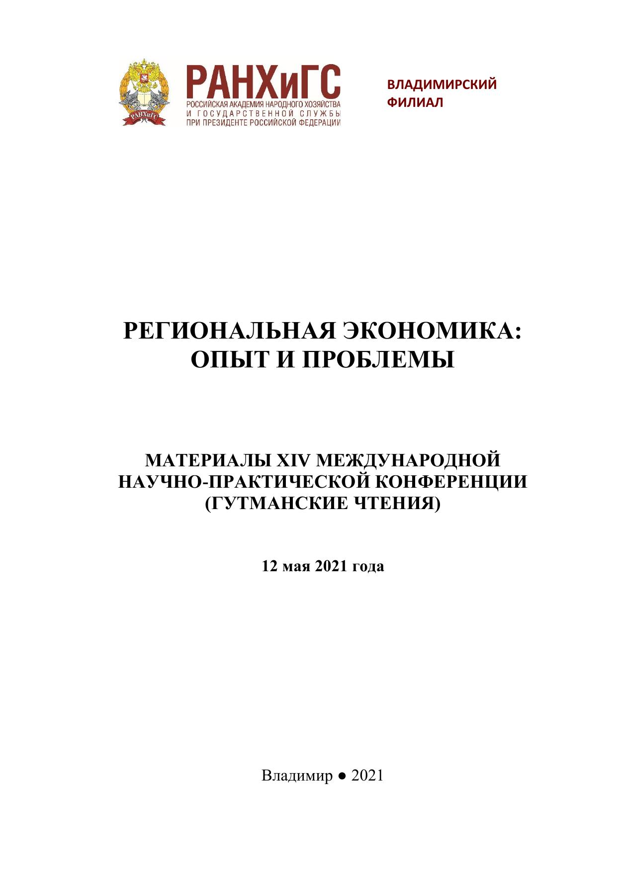Региональная экономика: опыт и проблемы: материалы XIV Международной научно-практической конференции (Гутманские чтения) 12 мая 2021 года