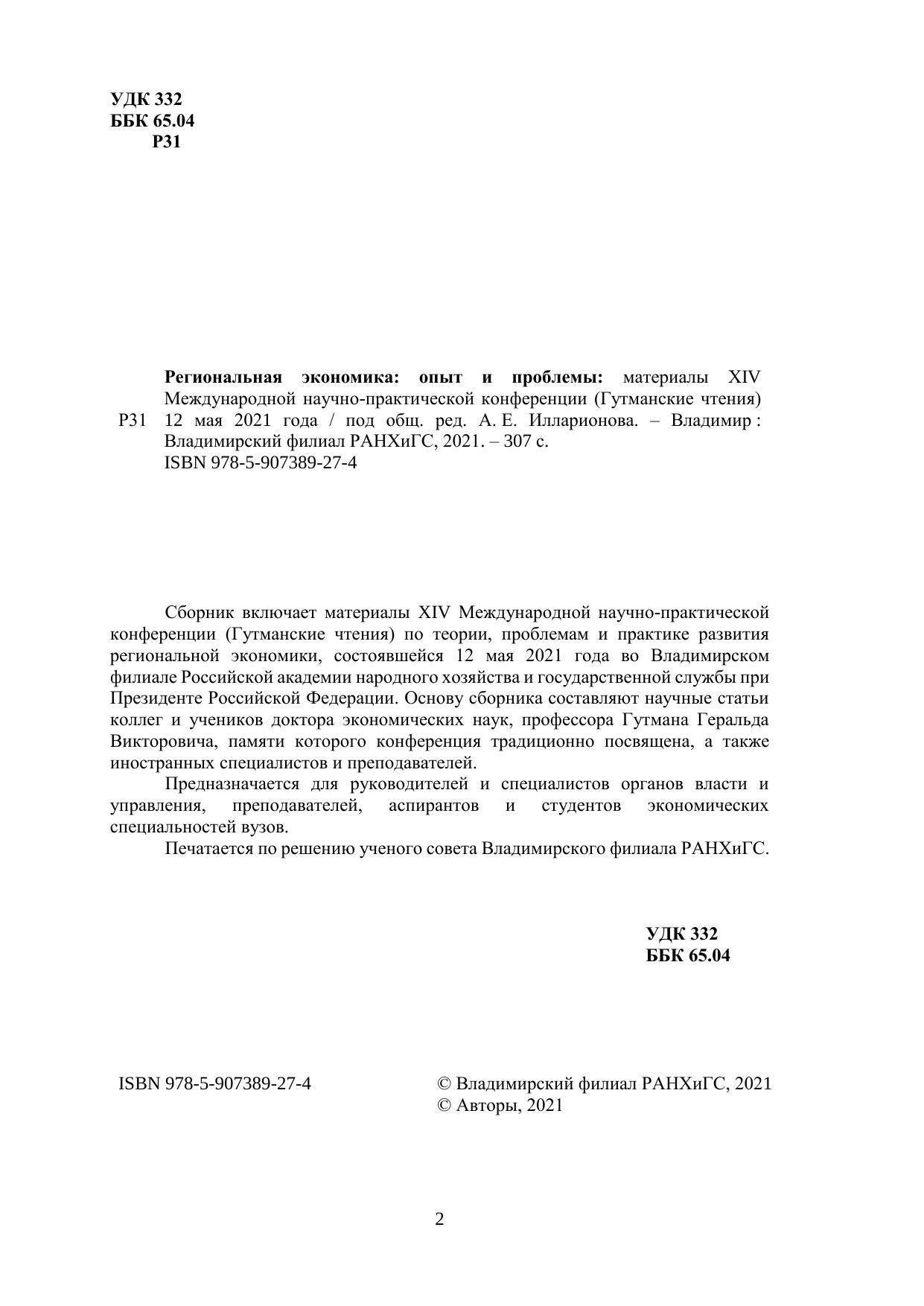 Сборник включает материалы XIV Международной научно-практической конференции (Гутманские чтения) по теории, проблемам и практике развития региональной экономики, состоявшейся 12 мая 2021 года во Владимирском филиале Российской академии народного хозяйства и государственной службы при Президенте Российской Федерации. Основу сборника составляют научные статьи коллег и учеников доктора экономических наук, профессора Гутмана Геральда Викторовича, памяти которого конференция традиционно посвящена, а также иностранных специалистов и преподавателей. Предназначается для руководителей и специалистов органов власти и управления, преподавателей, аспирантов и студентов экономических специальностей вузов. Печатается по решению ученого совета Владимирского филиала РАНХиГС.