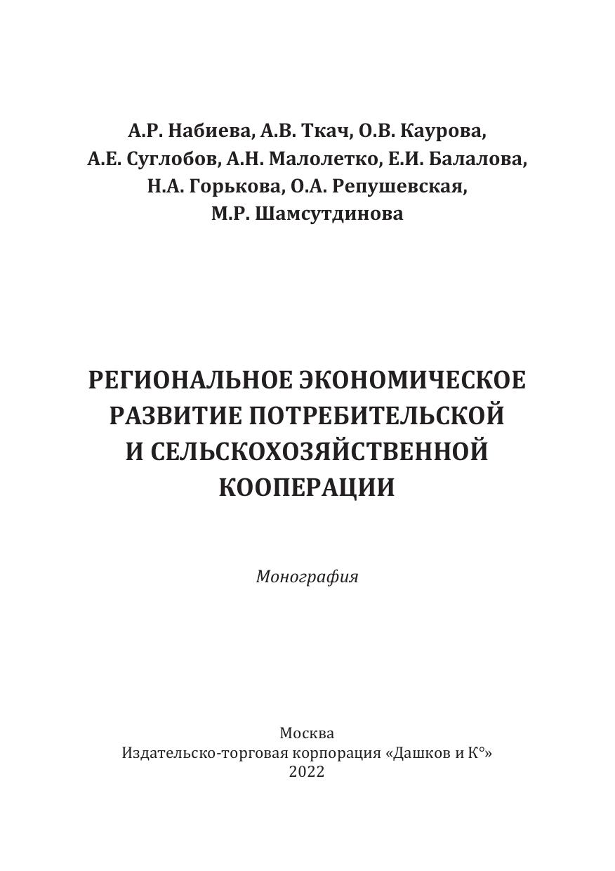 Региональное экономическое развитие потребительской и сельскохозяйственной кооперации