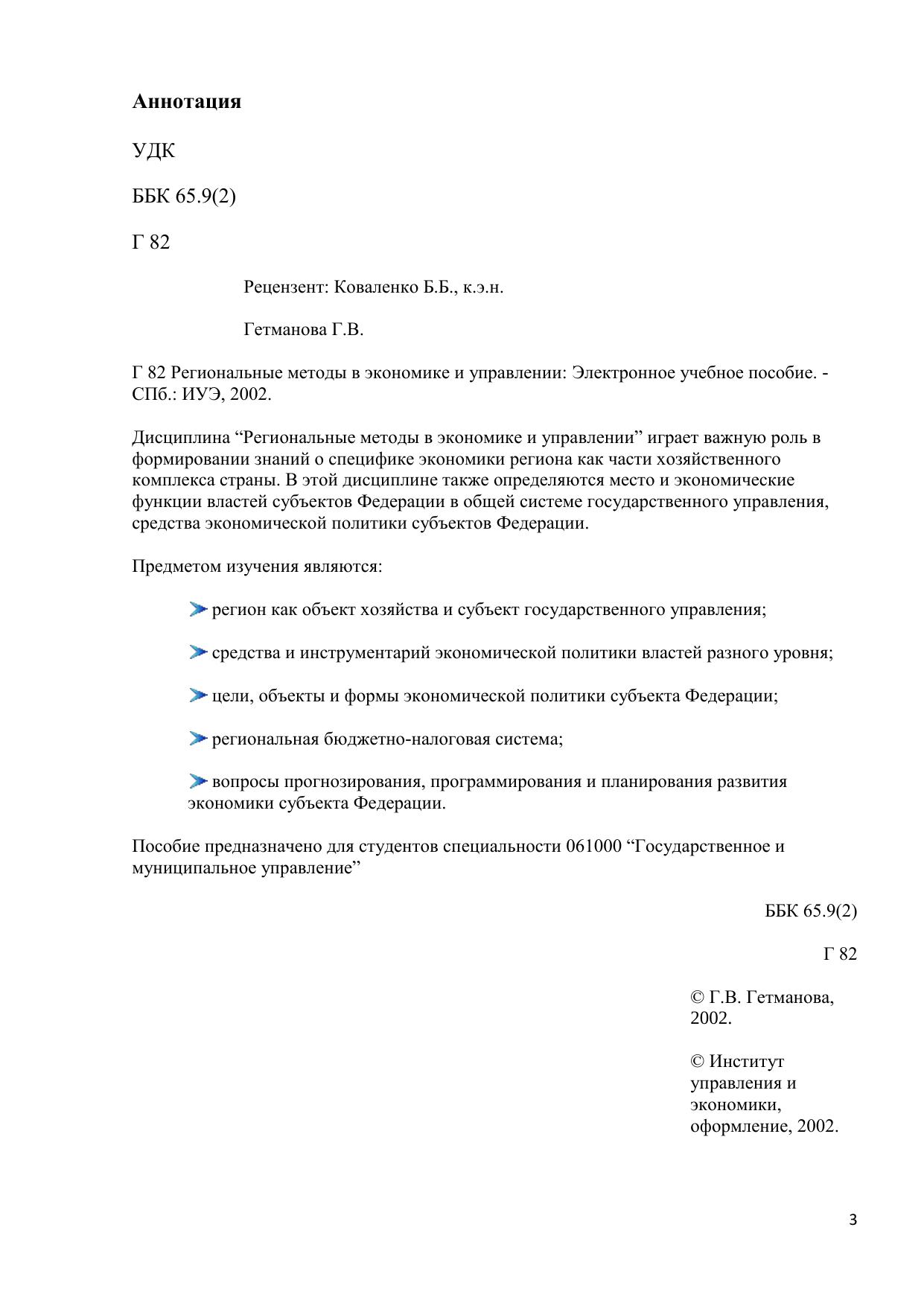 Дисциплина “Региональные методы в экономике и управлении” играет важную роль в формировании знаний о специфике экономики региона как части хозяйственного комплекса страны. В этой дисциплине также определяются место и экономические функции властей субъектов Федерации в общей системе государственного управления, средства экономической политики субъектов Федерации. Предметом изучения являются: регион как объект хозяйства и субъект государственного управления средства и инструментарий экономической политики властей разного уровня цели, объекты и формы экономической политики субъекта Федерации региональная бюджетно-налоговая система вопросы прогнозирования, программирования и планирования развития экономики субъекта Федерации. Пособие предназначено для студентов специальности 061000 “Государственное и муниципальное управление”. Электронное учебное пособие для дистанционного обучения